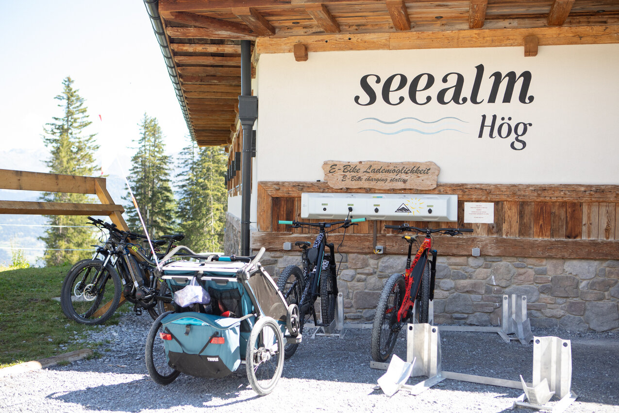 Das Fahren mit dem elektronischen Velo ist schon eine tolle Sache, besonders wenn du eine schwere Last ziehst. Die Ladestationen sind am Hochplateau sehr gut verteilt. Halte in der BIKEKARTE einfach Ausschau nach dem LADESTATIONEN-SYMBOL.