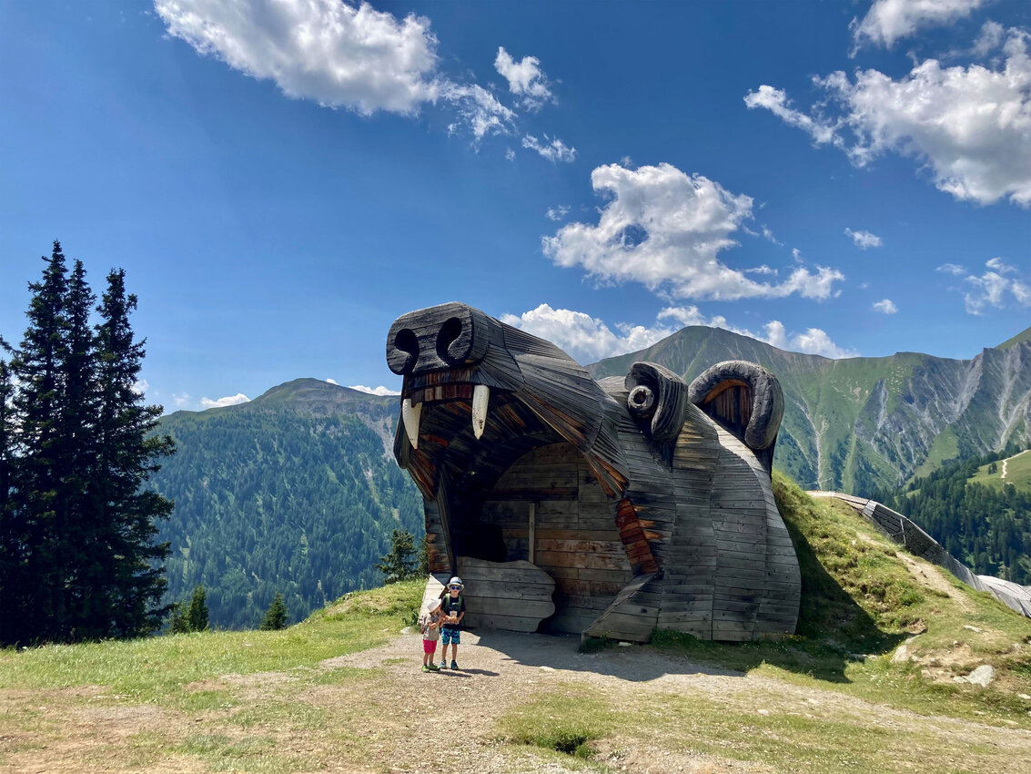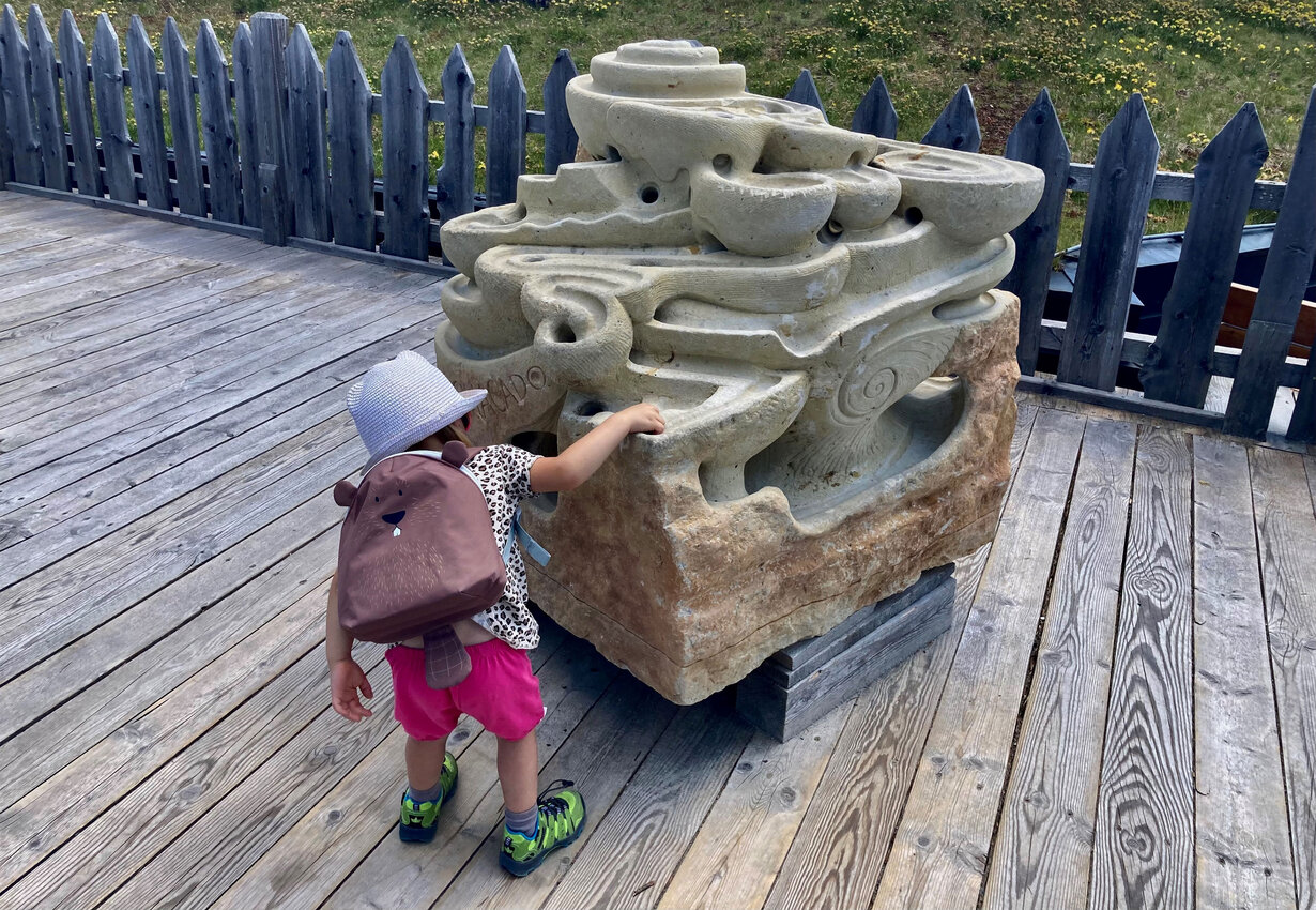 Hier dreht sich alles um Gesteine, Mineralien und Fossilien – faszinierende Zeugnisse der geologischen Vergangenheit der Alpen. Ausgestattet mit Schaufel und Bürste begaben sich die beiden auf eine aufregende Expedition durch das Gebiet der archäologischen Ausgrabungen. Spaß, Spannung und jede Menge Wissen zum Mitnehmen wird hier garantiert. Besonders beeindruckt war ich davon, wie motiviert die dreijährige Sophia den Motoriktrail mehrmals nutzte. Die Relaxstationen rund um das Georama bieten die perfekte Gelegenheit für eine kurze Pause, während man seinen Kindern beim Spielen zusehen kann. Ein weiteres Highlight sind die kunstvoll gemeiselten Kugelbahnen aus Stein. Die Kinder verfolgten hier begeistert, wie die Kugeln kreuz und quer entlang der Bahnen sausten.