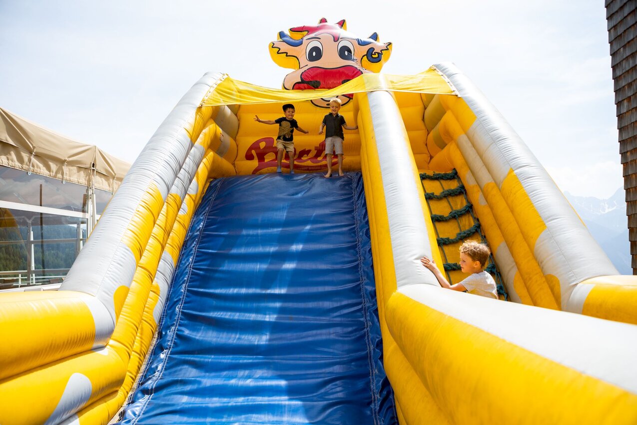 Nachdem du rund 400 Höhenmeter gondelnd überwunden hast, landest du direkt beim Fisser Bergrestaurant samt großer Terrasse, Wasser- und Sandspielplatz sowie zahlreichen actionreichen Attraktionen. Aber was kannst du dir nun vom Familienfest am Berg erwarten? Mir wurde gesagt: JEDE MENGE!