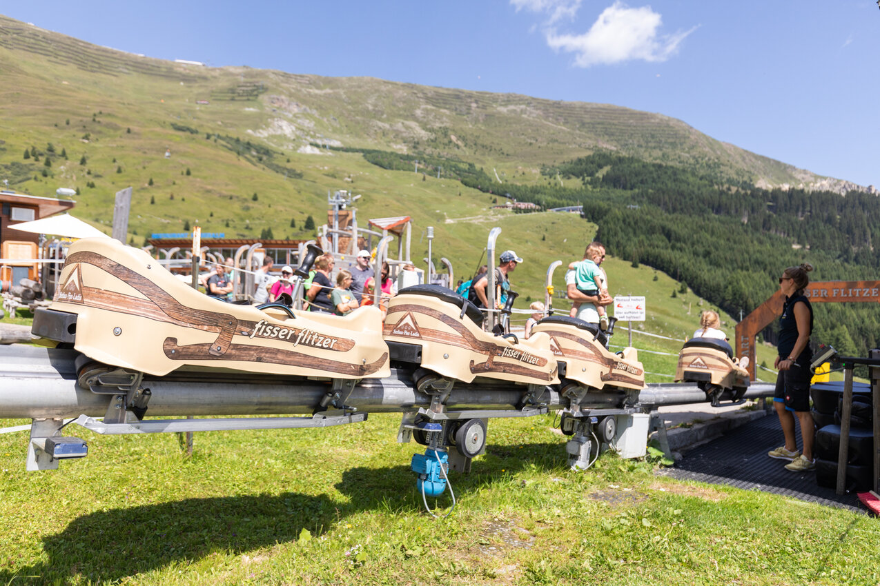 Mit der Gondel rauf und mit der Gondel wieder runter? Kannst du, musst du aber nicht. Viel lustiger ist meiner Meinung nach ein 2,2 km langer Ride mit der gelben SOMMERRODELBAHN Fisser Flitzer durch Gruseltunnel und Piratenschiff hinunter ins Dorf. Oh ja, auch der Sommer-Funpark Fiss ist während dem Erlebnisabend Fiss in Betrieb. Aus Erfahrung kann ich dir sagen: Hier steht nicht nur Fun drauf, sondern da steckt auch jede Menge Fun drin. Und abends bei DÄMMERSTIMMUNG macht’s irgendwie noch mehr Spaß, aufzubleiben und am Berg Neues auszuprobieren.