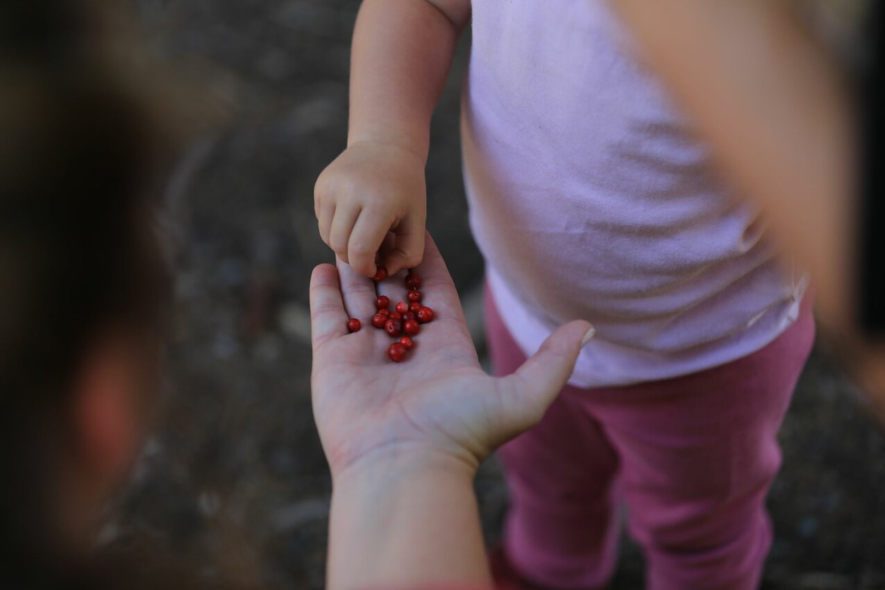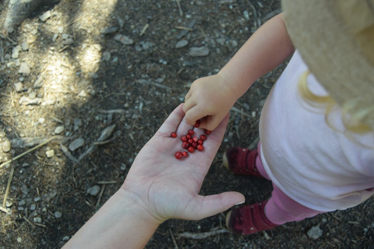 Was wächst denn da? Wer gerne wandern geht, hat sicherlich schon einmal an wilden Preiselbeeren genascht. Super gesund sollen sie sein, die “Granten“. Diese sind leuchtend rot und haben einen herben und sauren Geschmack. Die kleine Stärkung schmeckt dem Zwerg natürlich gut und ich fühlte mich wieder in meine Kindheit versetzt. Ich kann mich gut erinnern, dass ich früher als Kind oft zwischen Sträuchern im Wald verschwand, um die geliebten Wildpreiselbeeren zu sammeln. Falls nicht bereits beim Wandern vernascht, kannst du die “Granten“ sehr gut als gekochte Beilage verarbeiten. Also einfach drauf los pflücken!