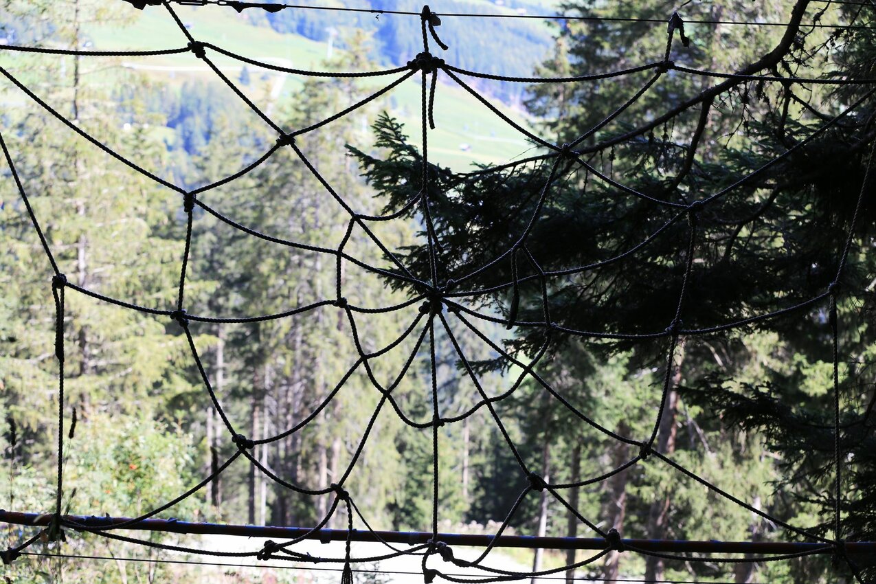 “Goti, schau amol!“, da hat Antonia ein Kletter-Spinnennetz entdeckt und möchte natürlich sofort hoch hinaus klettern. Wie eine kleine Spinne klettert sie über das riesige Spinnennetz und möchte am liebsten schon gar nicht mehr runter. Weiter geht’s durch den angenehm schattigen Wald und schon ist es Zeit für eine kurze Pause. Wir haben ein schönes sonniges und ruhiges Plätzchen gefunden, wo wir unsere verdiente Jause auspacken. Hier lassen wir uns ein Stück Obst und frisch belegte Brötchen schmecken und genießen die Sonne. Der Gesang verschiedener Vogelarten und die Sichtung des Greifvogels Milan rundet unsere Rast ab. Frisch gestärkt und mit gut gefüllten Mägen, geht es dann wieder weiter Richtung Serfaus.