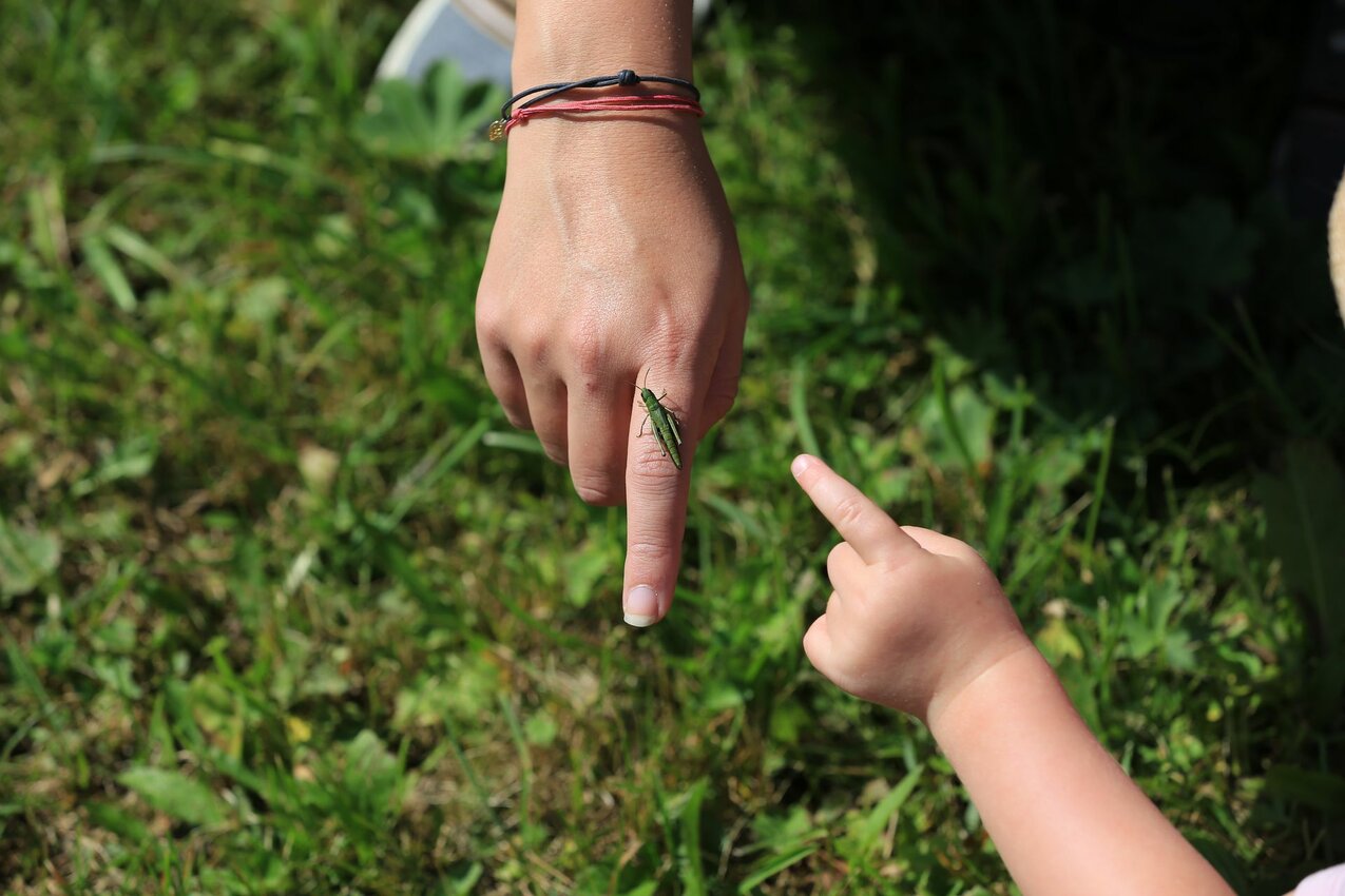 Na, sieh mal einer an - links und rechts am Wegesrand gibt es allerhand an Blühendem zu sehen. Unsere kleine Entdeckerin fühlt sich in der Natur sichtlich wohl.