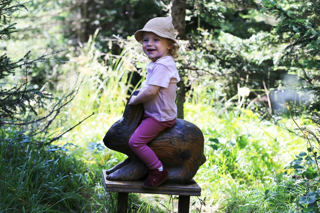 Familie . Abenteuer . Natur . Das sind die wichtigsten Merkmale, die der Familien-Erlebnisweg widerspiegelt. Besonders im Herbst, wenn die Natur zum Spielplatz wird, machen Wanderungen mit Kindern einen Riesenspaß. Bei traumhaftem Wetter, ausgerüstet mit einer Kraxe und dem Rätselheft, mache ich mich mit meiner Schwester und meinem Patenkind Antonia, der kleinen Entdeckerin daran, das Rätsel zu lösen. Als "Goti", was bei uns hier Patentante bedeutet, ist es für mich natürlich immer schön, etwas Zeit mit Antonia zu verbringen und wir drei Mädels freuen uns schon sehr auf einen tollen Wandertag.