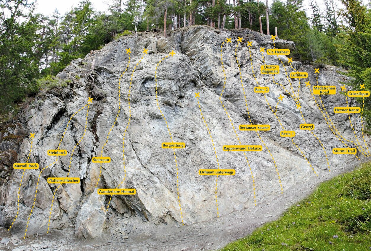 Für echte Cliffhanger stehen beispielsweise Plattenschleicher, Serfauser Sauser, die gute alte Berta (2) und viele weitere spannende Kletterrouten zur Auswahl. Einsteigerrouten wie Murmli Rock oder Berta 1 eignen sich dabei für das erste Kennenlernen am Felsen. Schnell wird klar: Auch hier draußen haben die zwei MASKOTTCHEN Murmli und Berta das Sagen. Was ist deine Lieblingsroute?