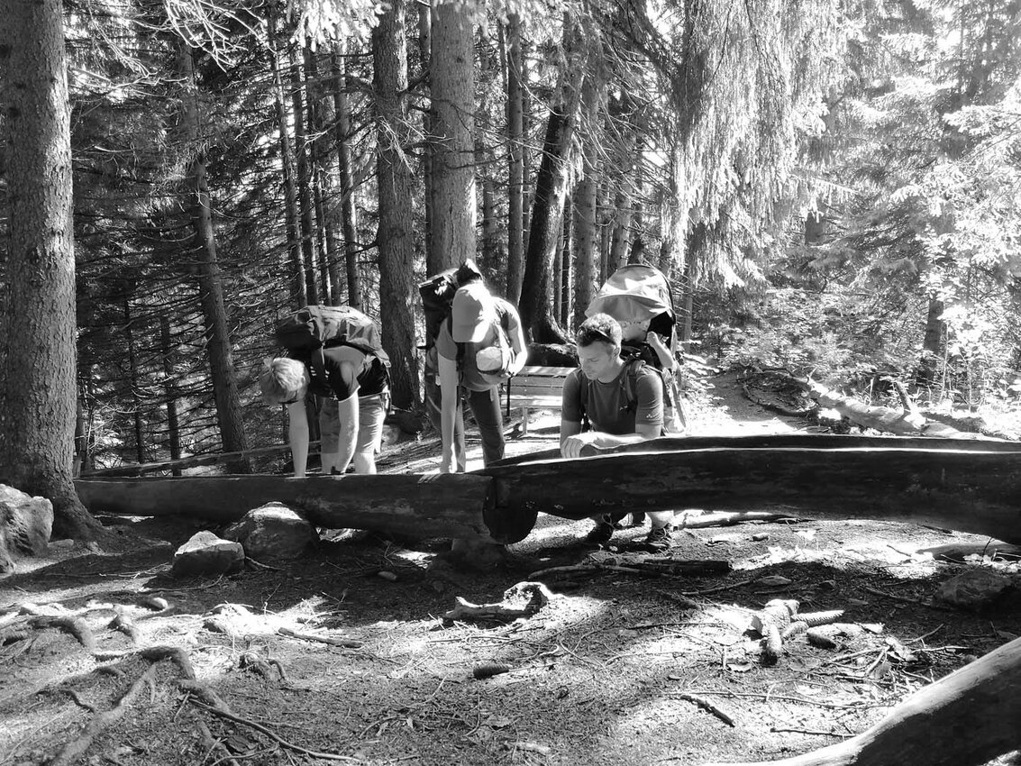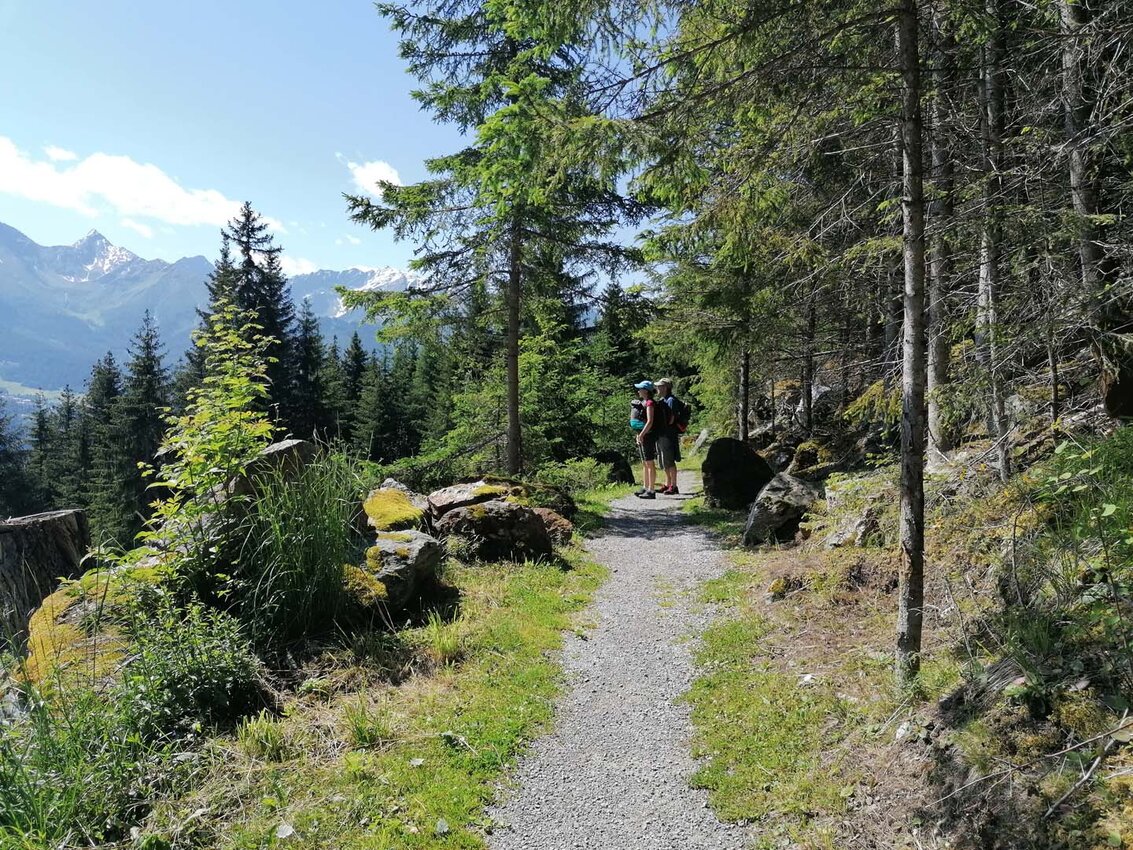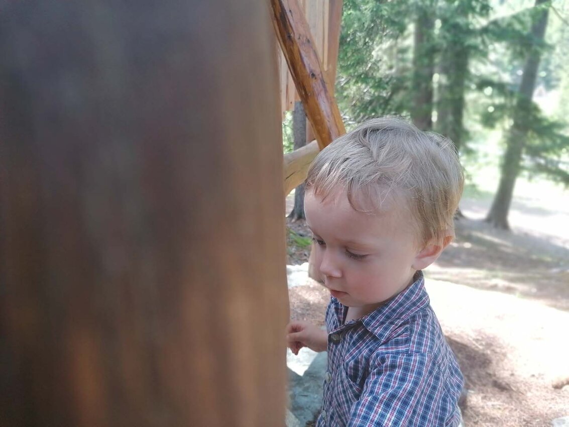 Für diese Tour würde ich einen ganzen Tag einplanen. So können die Kinder auch mal länger auf den Spielplätzen spielen und die Gegend erkunden, ohne dass Mama und Papa ständig auf die Uhr schauen müssen. Um wieder zurück ins Dorf Ladis zu gelangen, nehmen wir zuerst den Fahrweg und biegen anschließend wieder in den Wald ab. Auf unserem Rückweg wandern wir dann erneut auf einem Themenweg: dem Spiel- und Erlebnisweg. Dieser ist übrigens kinderwagentauglich und führt uns zurück an unseren Ausgangspunkt: zum Wasserrad bzw. Lader Weiher.