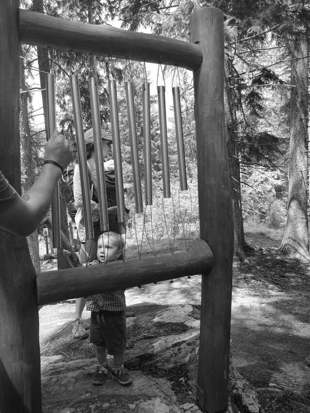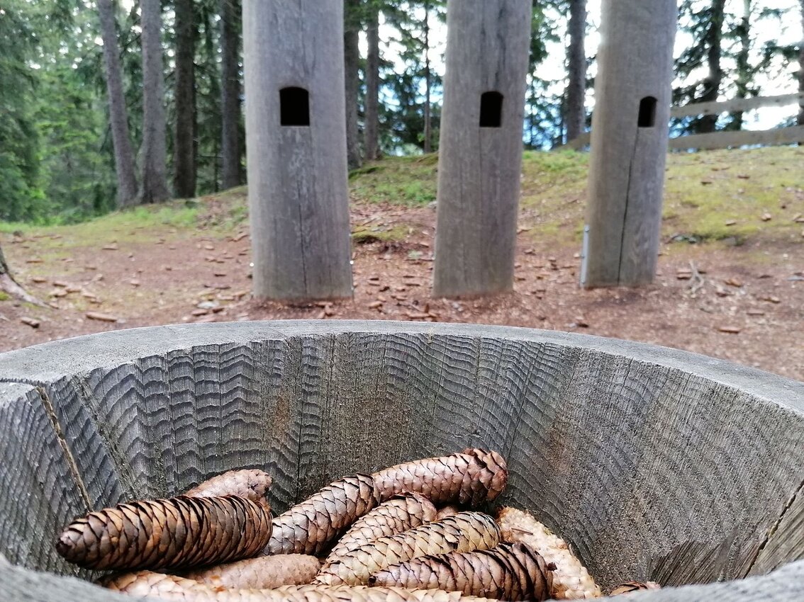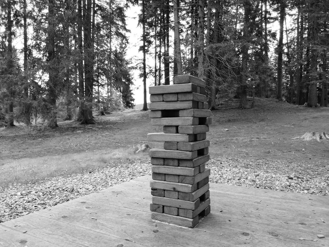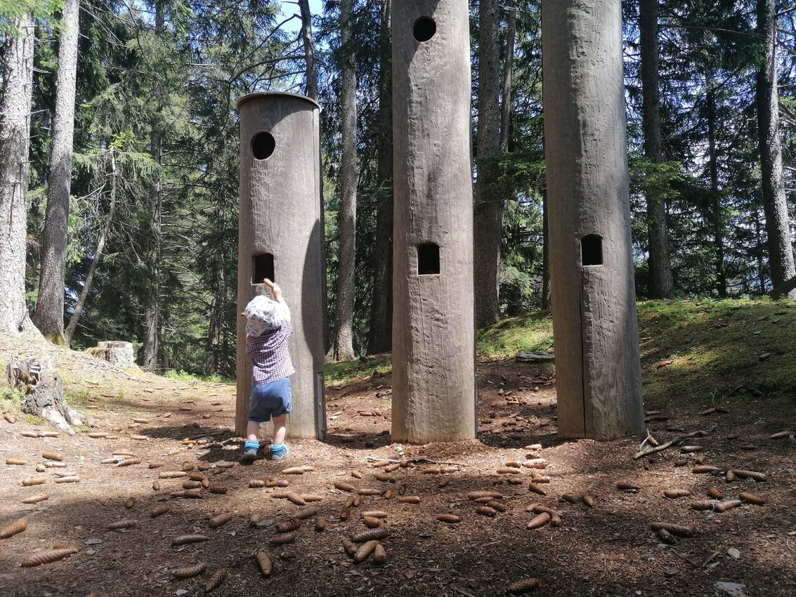 Nach dem leckeren Grill-Mittagessen möchte sich nun mein kleiner Abenteurer ein wenig hier oben umschauen. Oberhalb vom Grillplatz gibt es nämlich viel zu entdecken. Von einem überdimensional-großen Jengaturm oder tierischen Puzzle zu Klanginstrumenten mitten im Wald bis hin zu Tannenzapfen, die spielerisch zu Wurfgeschossen mutieren.