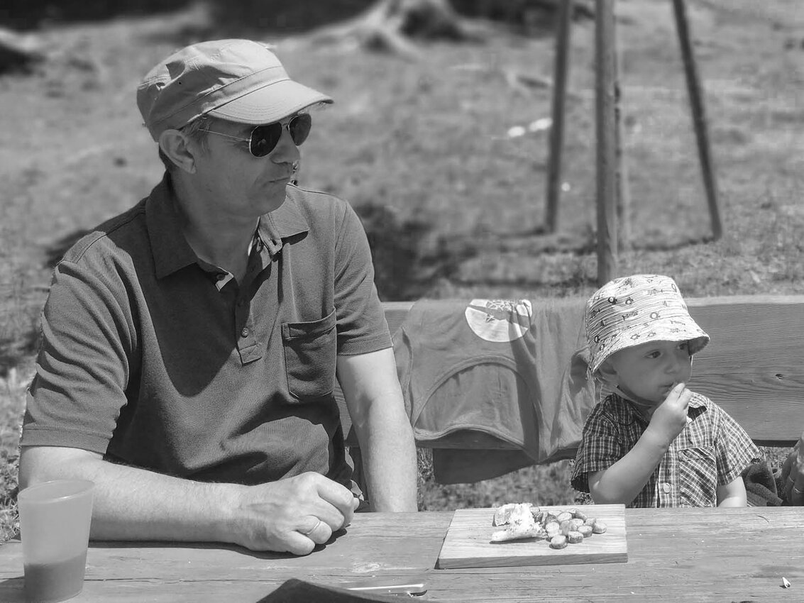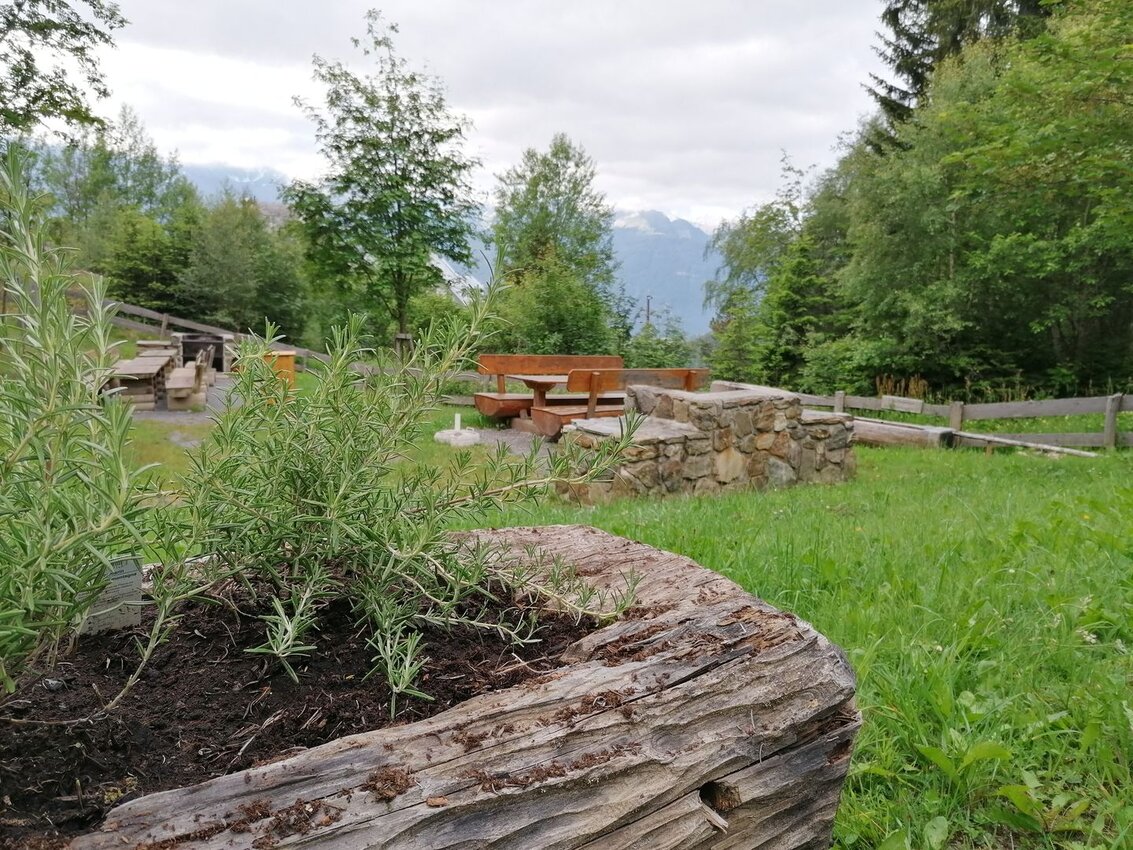 Es ist nun 12.00 Uhr. Pünktlich zum Glockenschlag der Kirche in Ladis, knurren auch schon unsere Mägen. Auch meine kleine Tochter schaut mich bereits mit einem verheißungsvollen Blick an. Wir wandern zurück zur Weggabelung und ein paar Schritte dorfwärts. Nach 5 Minuten erreichen wir dann auf der linken Seite, oberhalb der Jausenstation Neuegg, das verspielte Wodebad bzw. den gemütlichen Grillplatz. Bevor wir den Spielplatz erkunden, starten wir aber unser Sommer-Barbecue. Das haben wir uns nun verdient.