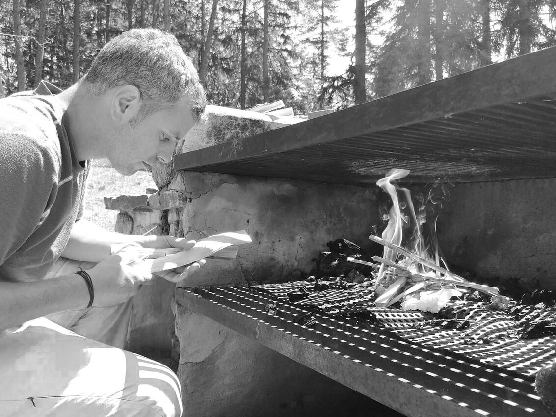 Der Grillplatz bietet drei Grillstellen, Holz fürs Feuer, reichlich Sitzbänke, ein kleines Kräuterbeet, Toilettenanlagen und Sonnenständer bzw. -schirme (hier sollte man schnell sein, denn sie können schnell vergriffen sein). Generell empfehle ich zudem, eine Kopfbedeckung an heißen Tagen zu tragen. Während sich die Damen und Zwerge unter uns schon mal ein Plätzchen auf den Bänken oder im Schatten unter den Bäumen sichern, sorgen die Herren für Barbecuefeeling und machen Feuer. Feuerzeug, Anzünder und Grilltassen nicht vergessen. Weniger ist mehr. Wir haben Grillwürstchen und Brot im Gepäck. Ein Schnaps zum Anstoßen darf natürlich auch nicht fehlen. Hier muss ich aber leider passen. In ein paar Monaten dann wieder. Direkt auf dem Grillplatz gibt es keinen Brunnen mit Trinkwasser. Daher empfiehlt es sich, mit gefüllten Flaschen einzutrudeln. Auf dem Weg hinauf gibt es einige Wasserquellen. Mmmh… wie gut das Wasser hier schmeckt.