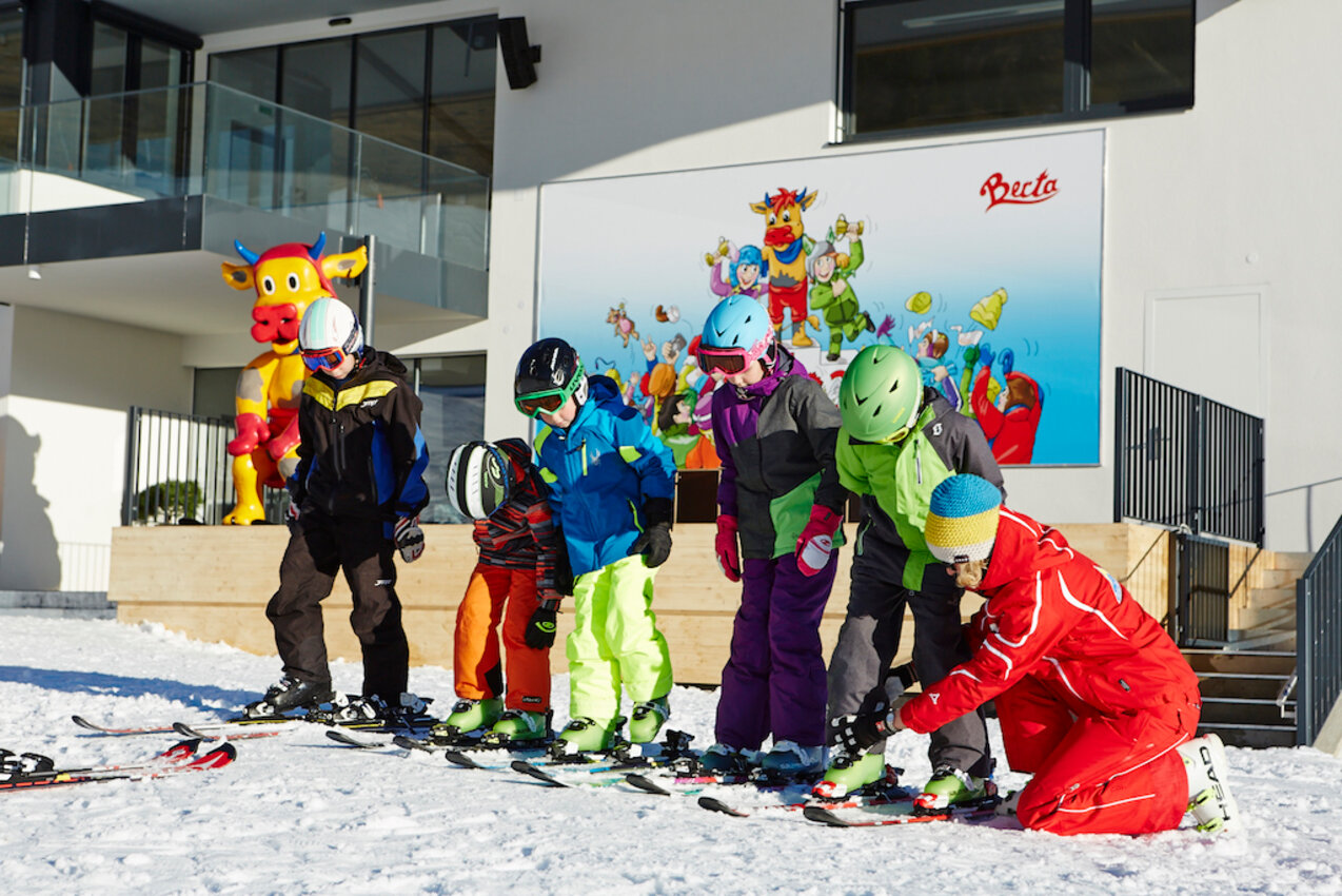 Fangen wir mal bei über 2000 Sonnenstunden im Jahr an – das alleine zaubert den Kindern schon ein Lächeln in das Gesicht. Dazu kommen unzählige Attraktionen und die beiden fröhlichen Maskottchen Berta die Kuh und Murmli Murmeltier. Die flotte Berta ist in Fiss zuhause, sie unterstützt die Kids bei ihren ersten Versuchen Ski zu fahren, kocht mit den Kleinen im eigenen Kochstudio leckere Mahlzeiten und hin und wieder veranstaltet sie ein Fest auf dem Fisser Abenteuerspielplatz. Auf über 10.000 Quadratmetern begeistert ein eigenes Erlebnis-Kinderland die jungen Skifahrer – in der Kindervilla nebenan wartet Berta dann schon täglich auf ihren großen Auftritt. Was das ist, verraten wir an dieser Stelle allerdings nicht. Sondern in einem anderen Beitrag...