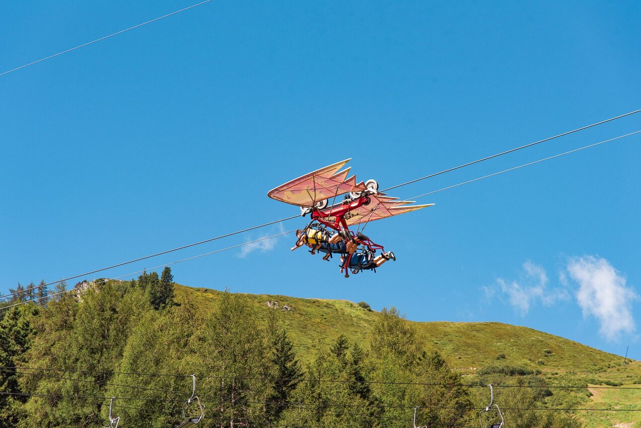 Der Sommer-Funpark Fiss an der Bergstation Möseralm bietet Spiel, Spaß und adrenalingelandene Action für die ganze Familie. Kleinkinder kommen in kleinen Karussells, auf Rutschen oder beim Buddeln und Matschen im Sand auf ihre Kosten. Die etwas Größeren können mit dem Fisser Flitzer über 2,2 km von der Möseralm zurück nach Fiss sausen (ab 7 Jahre bzw. 1,30 m Körpergröße alleine, darunter mit Begleitperson). Mit der SUPER. SOMMER. CARD. kannst du direkt nebenan wieder nach oben fahren und auf ein Neues starten. Wer noch ein wenig älter (und mutiger!) ist, darf im Fisser Flieger wie ein Adler durch die Berge schweben. 47 Meter über dem Boden saust du mit 80 Stundenkilometern über den Sommer-Funpark Fiss entlang (ab 10 Jahren / mind. 1,30 m Körpergröße) Und wem das immer noch nicht reicht, der kann in der Riesenschaukel Skyswing sogar schwerelos und mit Überschlag durch die Alpenwelt fliegen (ab 1,40 m Körpergröße). Der Besuch des Funparks ist kostenfrei, die genannten Attraktionen kosten jedoch Eintritt.