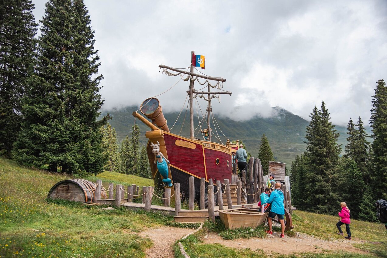 Unser Tipp: Die Bergstation der Komperdellbahn bietet dir Aktivitäten für gleich mehrere Tage. Themenwege wie die interaktive Rundwanderung auf dem Piratenweg (ca. 1,5 km) oder die ausgedehntere Tour auf dem Six-Senses-Weg (ca. 6 km) mit Zwischenstopp am Erlebnispark Hög sind ideal, um deine Kinder für das Wandern zu begeistern. Das Lösen der Rätsel oder die vielen Erlebnisstationen lassen die gewanderten Meter zur Nebensache werden.