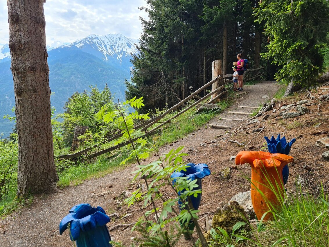 Start in Fiss: Wenn du im Nachbarort Fiss starten willst, wandere einfach vom Seilbahnparkplatz Richtung Sägegasse und folge der Beschilderung zum Falterjöchl. Eine weitere Möglichkeit ist von Fiss aus am Wolfsee und Indianerdorf vorbei zum Weiberkessl. Das Eingangstor mit dem Forscher wird dir den Weg weisen.
