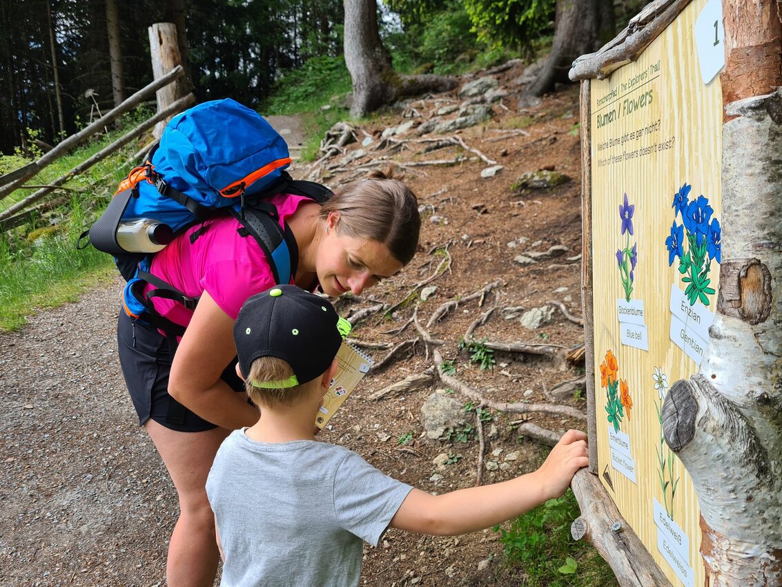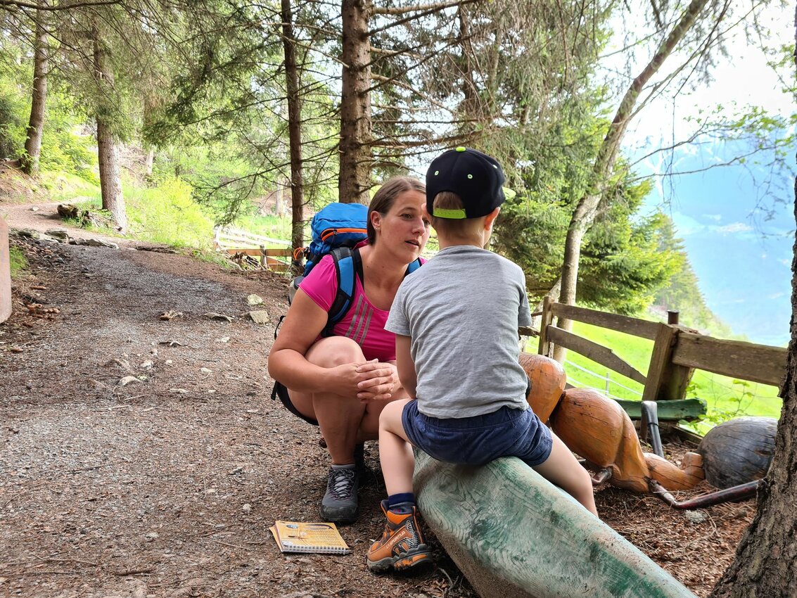Für unsere Wanderung solltest du dir etwa 2,5 Stunden Zeit nehmen. So können die Kleinen entspannt die Natur erkunden und die Rätsel auf dem Foscherpfad ohne Hast lösen. Entlang des Weges gibt es genügend Bänke zum Rasten und Jausnen. Der Forscherpfad samt Wanderung über den Wasserwandersteig eignet sich perfekt für heiße SOMMERTAGE. Beide führen durch den schattigen Wald oberhalb von Ladis. Aufgepasst: Der Forscherpfad ist nicht kinderwagentauglich, ist aber mit einer Kinderkraxe leicht begehbar. So können auch die Kleinsten mit auf die Erkundungstour. Solltest du von Serfaus oder Fiss aus starten kannst du auch bequem den Wanderbus oder die Sonnenbahn nach Ladis nutzen.