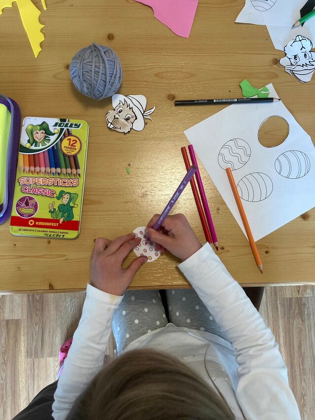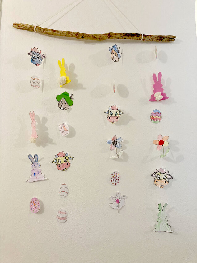 Hurraaaa! Der Ast mit den bunten Ostermotiven ist nun fertig! Gut gemacht!