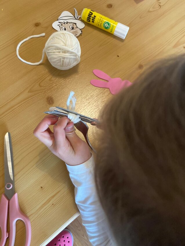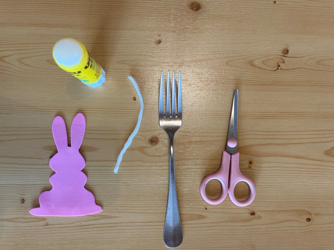 Du hast dich sicher schon gefragt, wozu du eine GABEL zum Basteln brauchst? Kleiner Tipp: Zum Aufgabeln von deinem LIEBLINGSESSEN brauchst du sie nicht. Mit ihr bastelst du kleine BOMMEL. Die vier Zacken der Gabel eignen sich super dafür. Die flauschigen Bommel befestigst du dann an der Hinterseite der Hasen. Wir zeigen dir, wie es geht.