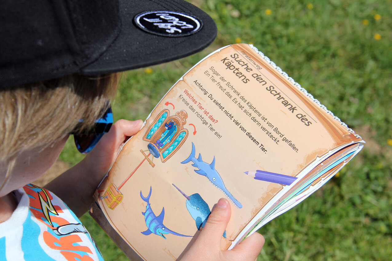 Aber der SCHATZ liegt natürlich nicht im Piratenschiff verborgen. Das wäre ja auch zu einfach, oder? Die Wanderung geht noch etwas weiter. An der nächsten Station verrät eine echte SCHATZKARTE, in welcher der nächsten Truhen der Schatz zu finden ist. Finde selbst heraus, was der Schatz auf dem Piratenweg ist. Die Suche lohnt sich: So viel verraten dir Eliah und Louis schon mal.