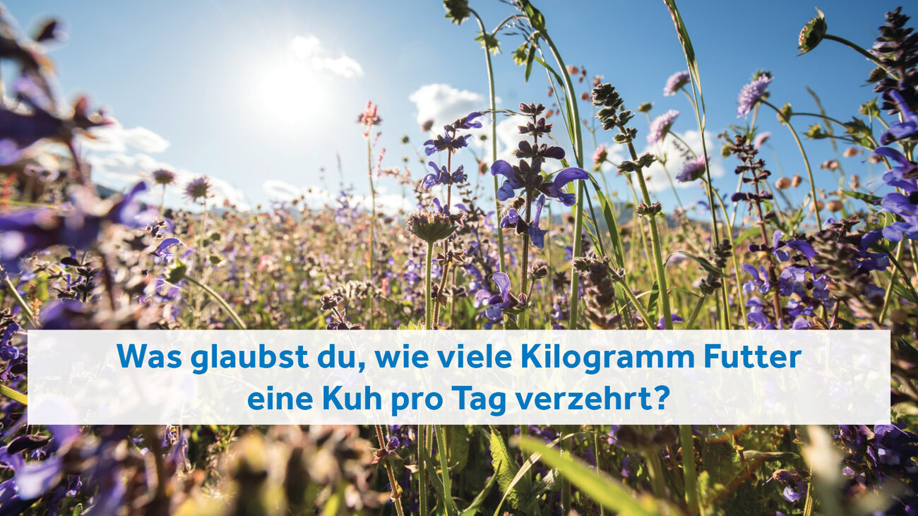 Kilogramm Grundfutter (Heu, Gras, Mais- oder Grassilage). So viel frisst eine Kuh durchschnittlich am Tag! Bei dieser Futteraufnahme kann eine Kuh entweder täglich 10-15 Kilogramm Milch produzieren oder 700-900 Gramm an Gewicht zunehmen. Bei höheren Leistungen ist die Zufuhr von sogenanntem Nähr- und Kraftstofffutter nötig. Ganz schön verfressen diese Rinder!