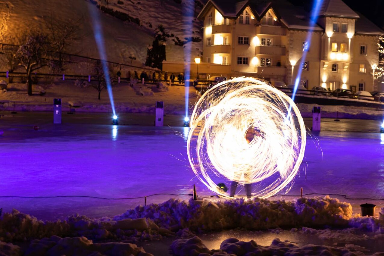 Ein Event für alle Jungen und Junggebliebenen mit tollen Eiskunstlaufvorführungen der Nachwuchsläuferinnen des Tiroler Eislaufverbandes, Party und einer Feuershow am Lader Schlossweiher.