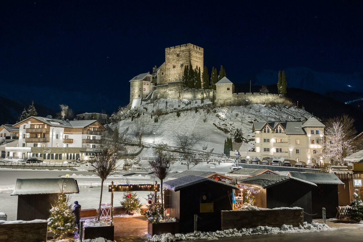 Am Fuße der beleuchteten Burg Laudeck, umgeben von den mittelalterlichen Bauernhäusern mit ihren bunten Fassaden und direkt am zugefrorenen Schlossweiher, präsentiert Ladis nach Liftschluss stolz ein einzigartiges Programm. Lassen Sie sich im Winter jeden Donnerstagabend vom Marktdorf in Ladis mit regionalem Kunsthandwerk und traditionellen Köstlichkeiten am Schlossweiher verzaubern.