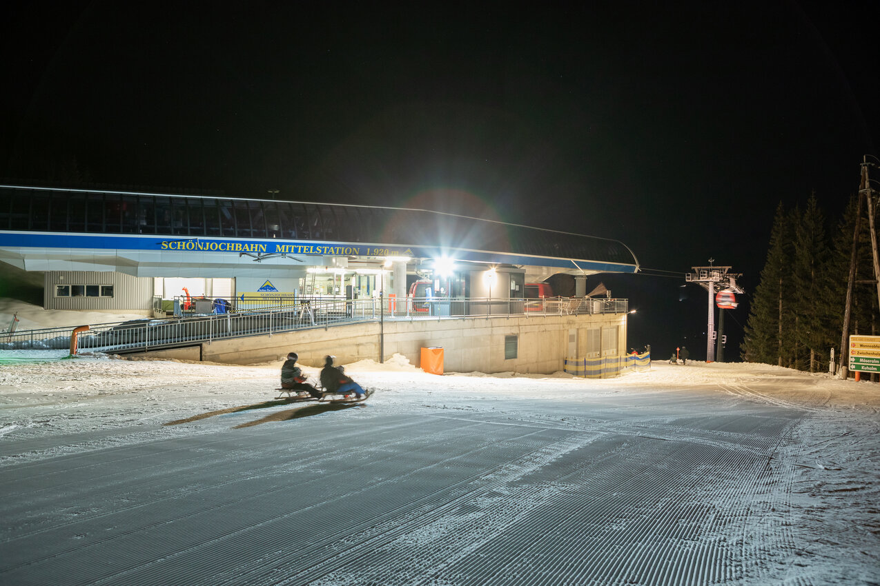 Jeden Donnerstagabend erwartet Sie eine rasante Fahrt von der Schönjoch Mittelstation, vorbei am gemütlichen Familienrestaurant Sonnenburg, wo man sich an mehreren kulinarischen Highlights stärken kann. Egal ob Fondue, Pizza Dome oder Selbstbedienung am Buffet – hier ist für jeden Geschmack etwas dabei. Für einen Besuch in der Sonnenburg, bitten wir Sie vorher einen Tisch an unseren Kassen zu reservieren.