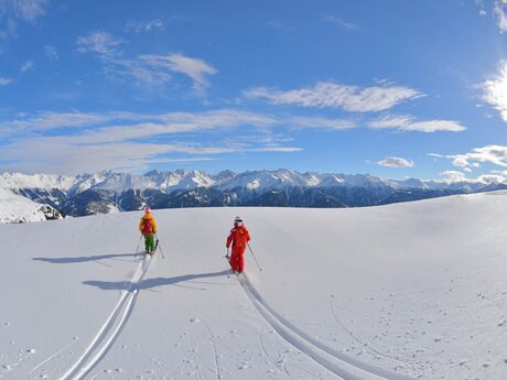 Für wen es etwas weniger Action sein darf, der entscheidet sich für eine Pistenskitour. Mehrere ausgeschriebene Touren führen sicher durch die Bergwelt der Ferienregion Serfaus-Fiss-Ladis und manchmal sogar auf großartige Gipfel. Ebenfalls möglich ist eine Skitour ins freie Gelände – ein besonderes Naturerlebnis in ruhiger Umgebung und unverspurten Tiefschneehängen. Wer nicht alleine losziehen will, kann eine geführte Skitour mit einem Guide der beiden Skischulen buchen.