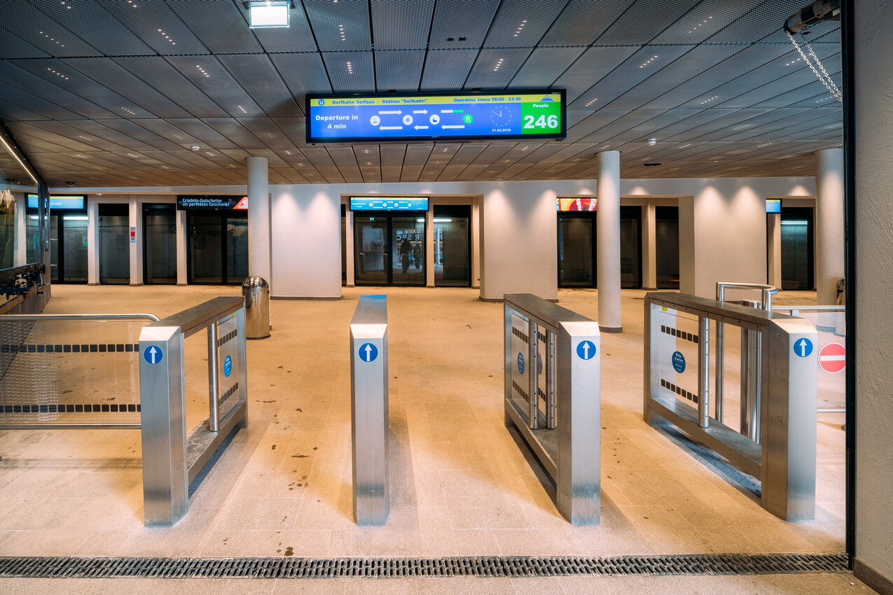 In der Station „Zentrum“ erfahren Fahrgäste Interessantes über das rege Serfauser Vereinsleben in Bildern und leicht fassbaren Texten. „Die Serfauser Vereine – tragende Säulen der Dorfgemeinschaft“ lautet dabei das übergeordnete Thema dieser kreativen „Bespielung“ der Station. Sechs großformatige Leuchtkästen im Tunnel, die keinesfalls zu übersehen sind, vermitteln einen Einblick in die wichtigsten Tätigkeitsbereiche der einzelnen Vereine, die ebenfalls dafür sorgen sollen, eventuelle Wartezeiten zu verkürzen. Natürlich kommen auch die kleinen Reisenden voll auf ihre Kosten. Ein handbemaltes „Wimmelbild“ voller spannender Detailzeichnungen animiert die Kids, während der Wartezeiten einen genaueren Blick auf das Vereinsleben in Serfaus zu werfen. Achtung: vor lauter Spielespaß die Bahn nicht versäumen!