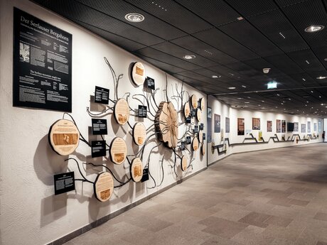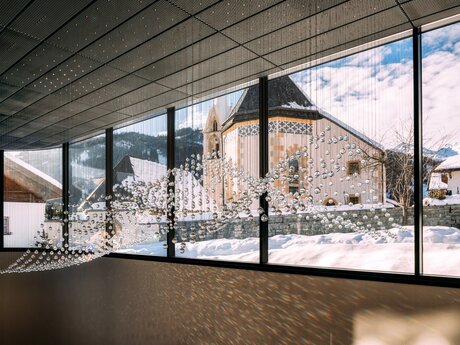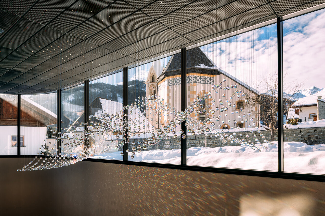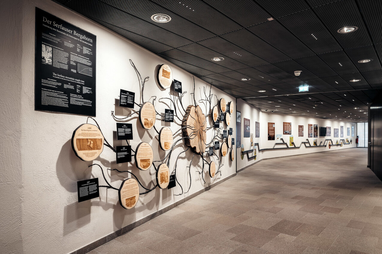 Die Inszenierung in der Station „Kirche“ widmet sich der touristischen und kulturellen Entwicklung von Serfaus. Der Wartebereich und der Zugangstunnel sind mit zahlreichen Informationstafeln und spannenden Elementen geschmückt. Der über 100 Jahre alte Bergahorn vor dem Friedhof, der dem Neubau weichen musste, erhält in der Station „Kirche“ eine liebevoll gestaltete Erinnerungswand. Aus den einzelnen Scheiben seines mächtigen Stammes fügt sich nun eine Chronologie des Serfauser Dorflebens der besonderen Art ein.