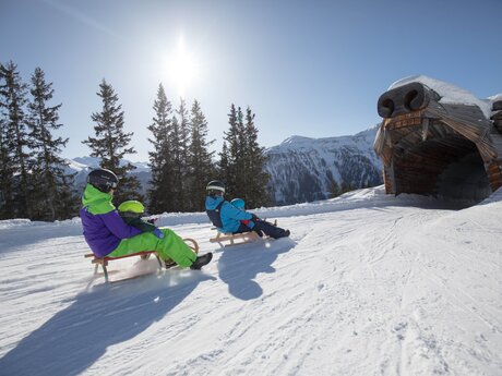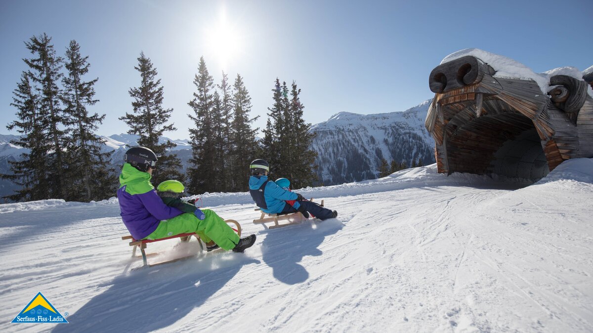 Auch von Abenteuer und Action gibt es in Serfaus-Fiss-Ladis eine Extraportion. Wie wäre es zum Beispiel mit Rodeln auf den zwei Rodelbahnen in Serfaus und Fiss mit insgesamt acht Kilometern Länge? Oder mit der Flying-Fox-Attraktion Serfauser Sauser mit einer Spitzengeschwindigkeit von 65 Stundenkilometern und einer Flughöhe von 85 Metern? Noch mehr Nervenkitzel wartet bei Fahrten in der riesigen Überschlagschaukel Skyswing, die mit ihren verschiedenen Levels für jeden die richtige Adrenalin-Stufe bietet, oder im Fisser Flieger, dem Flugdrachen, in dem bis zu vier Personen in 47 Metern Höhe über dem Boden schweben können.