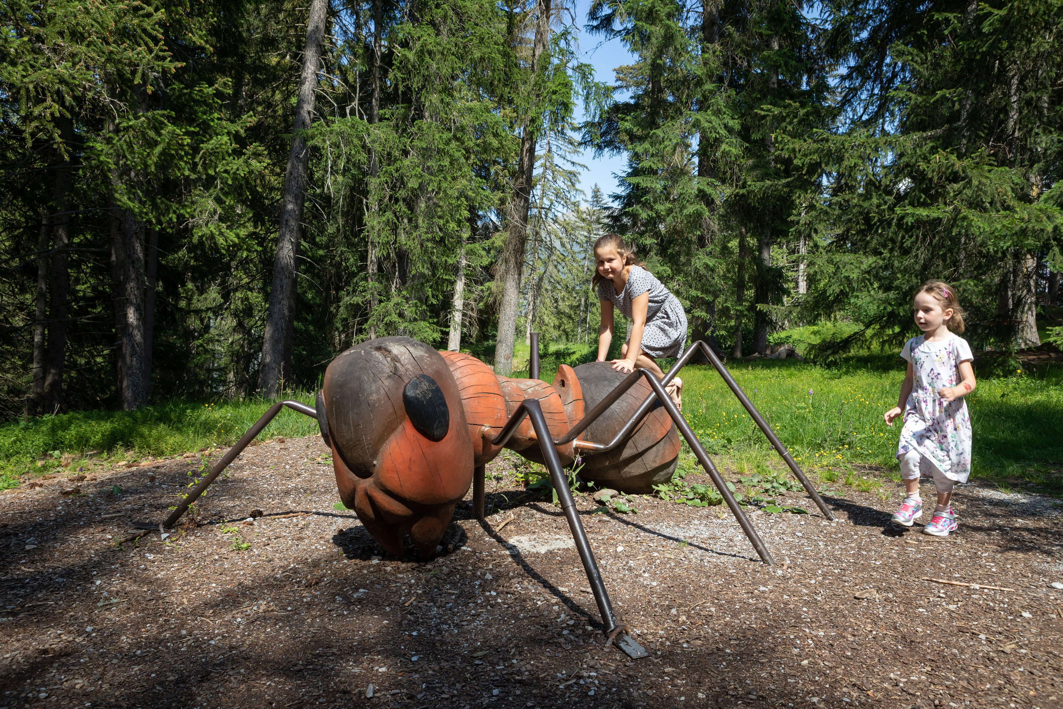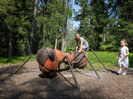 Besonders faszinierend ist es, im Murmliwasser in Serfaus Murmeltiere zu entdecken – ja, richtig gelesen! Ob im Gehege oder bei der Murmeltierhöhle, die Tiere können in ihrer natürlichen Umgebung beobachtet werden. Daneben gibt es zahlreiche interaktive Spiel- und Erlebnisstationen mit Wasser, Sand und Holz. Tierisch wird es auch im Wodepark. Allerdings warten hier keine niedlichen Murmeltiere, sondern zweieinhalb Meter große Ameisen, vier Meter lange Regenwürmer und gigantische Käfer. Sie gehören zur sagenumwobenen Geschichte des Riesen Wode aus dem Urgtal. Der Märchenturm enthüllt dessen Geheimnisse, vom zwölf Meter hohen Wodeturm hat man einen grandiosen Ausblick und wer genau hinschaut, kann sogar den Kopf des Riesen im Wodebad erspähen!