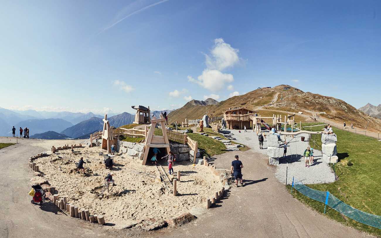 Ein weiteres Highlight ist der innovative Erlebnisspielplatz direkt an der Talstation der Komperdellbahn in Serfaus. Am Ende des idyllischen Holzkugelwegs gelegen, entführt die neue Wasser- und Sandspielewelt Familien in ein Reich der Fantasie und des gemeinsamen Erlebens. Es plätschert, gluckert und spritzt. Kinderlachen erfüllt die Luft. Der große Sandspielbereich bietet Platz für kreatives Bauen und fördert das spielerische Lernen in der Natur. Und die Eltern und Großeltern? Die entspannen auf bequemen Sitzgelegenheiten bei einer Erfrischung.