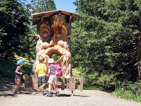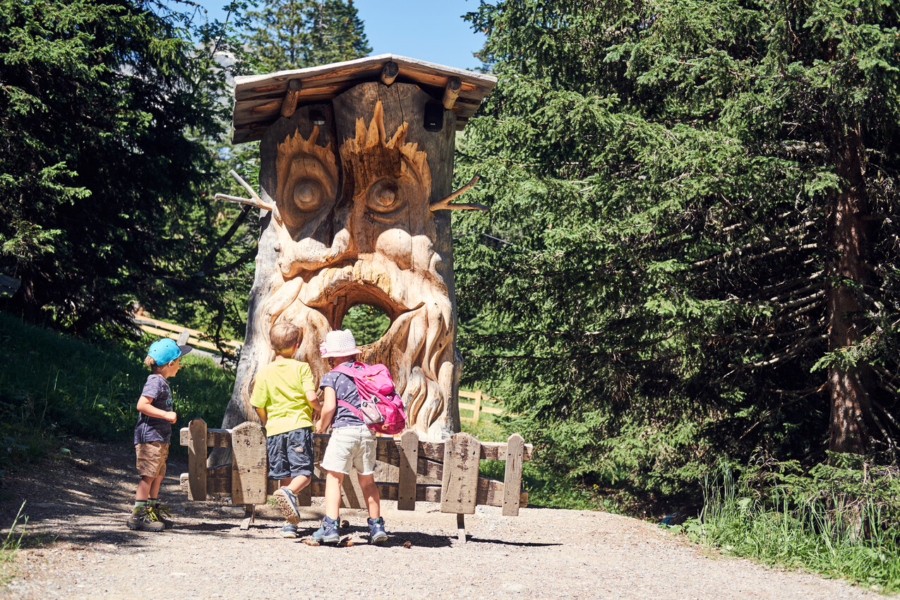Damit ist aber noch lange nicht Schluss mit dem Wanderspaß: Auf den zahlreichen Familienthemenwegen gibt es noch so viel mehr zu entdecken. Sie alle sind mit viel Liebe zum Detail gestaltet, um nicht nur die Schönheit der Natur zu enthüllen, sondern auch die Fantasie zu beflügeln. Auf dem Quellenweg beispielsweise wandeln die kleinen Wanderer auf den Spuren des Wassers und bekommen spannende Einblicke in die Geologie der Umgebung. Das Serfauser Maskottchen Murmli besuchen sie auf dem Murmliweg, auf dem ein Abenteuer nach dem nächsten wartet: schlafende Bären, krächzende Eulen und sogar sprechende Wurzelmänner! Und wer springt denn da vorne herum? Ist das die lustige Kuh Berta, das Maskottchen von Fiss-Ladis? Nein! Es ist der gierige Gnom, dem auf dem Goldenen-Mann-Weg mit dem Wissen über die Natur das Handwerk gelegt werden muss.