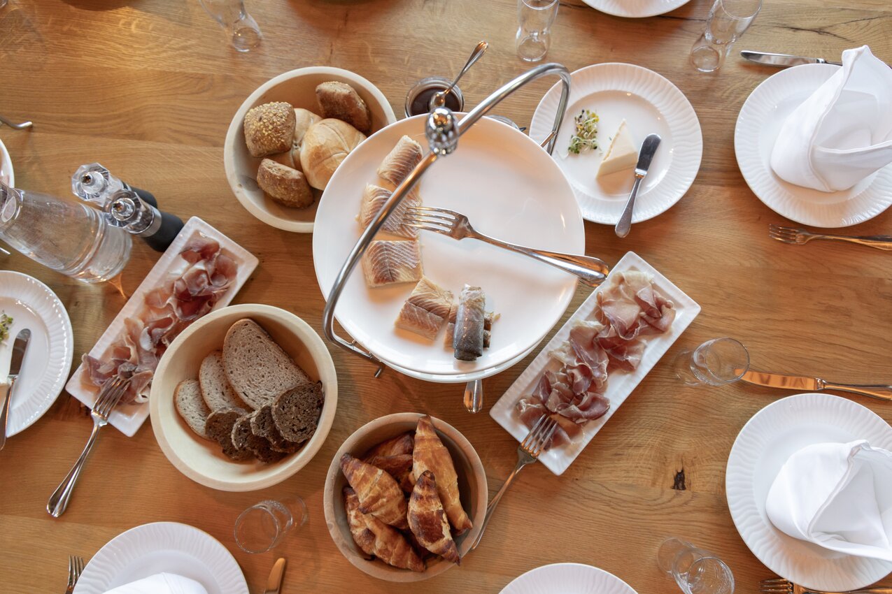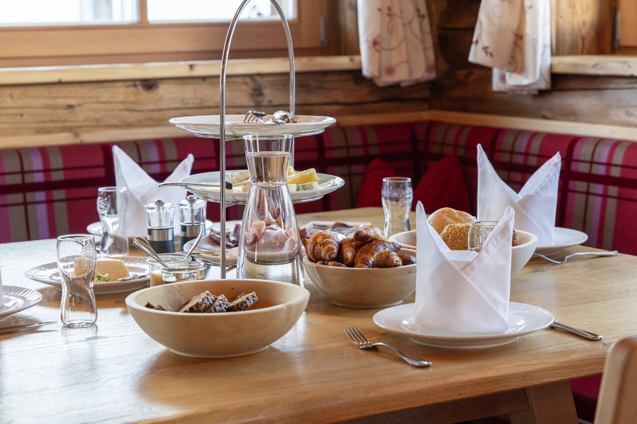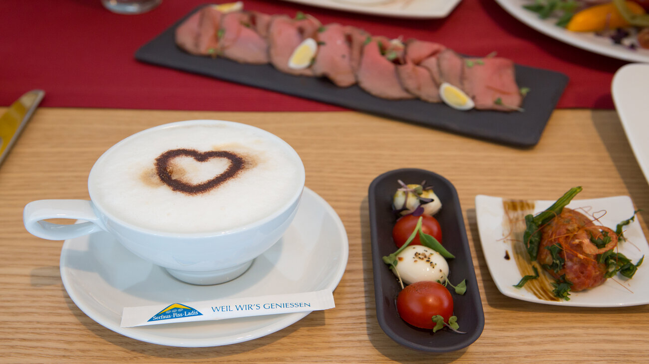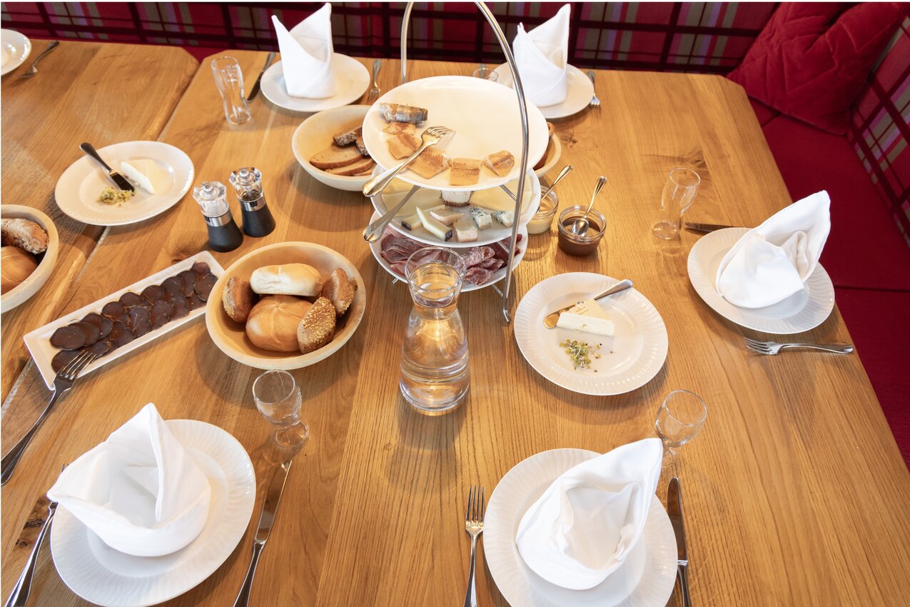 Frisch gebackenes Brot, herrlich weiche Butter und leckere Marmeladen stehen auf dem gedeckten Frühstückstisch. Nehmen Sie sich insgesamt für circa drei Stunden Zeit und schweben Sie drei Runden gemütlich über Fiss. Aufgetischt werden Beef Tartar, Räucherfisch, Wurst und Käse. Zum krönenden Abschluss gibt es vom Panoramarestaurant BergDiamant noch einen süßen Gruß aus der Küche.