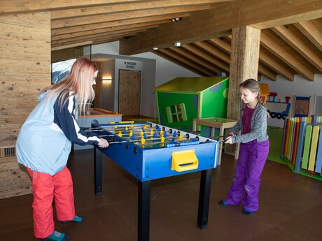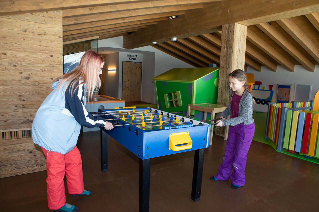 Auch im Spielbereich der Indoor Arena Fiss gibt’s allerhand zu erleben. Die Kleinsten dürfen sich auf eine Kleinkinderspielecke, ein Mini-Haus mit Rutsche sowie zahlreiche kindgerechte Wand- und Tischspiele freuen. Bei den älteren Kids sorgen Tischfußball, Air Hockey oder ein Billardtisch für Spaß und Abwechslung. Da vergeht die Zeit wie im Flug!