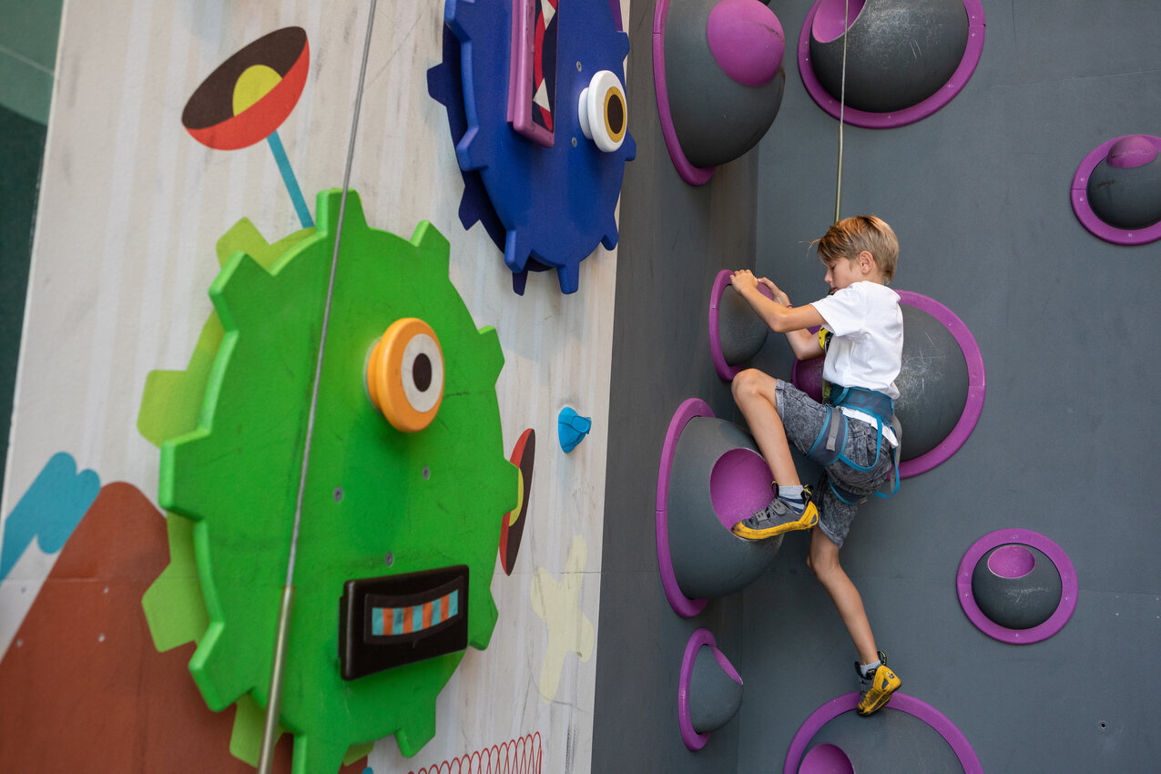 Kletterfans aufgepasst: Direkt an der Talstation der Komperdellbahn in der Indoor Spiel- und Kletterwelt PlayIN gilt es zwölf verschiedene Kletterwände zu meistern. Jede Route hat ein eigenes Motto und so ist für maximale Abwechslung gesorgt: Während bei der Speed Competition die Kletterer gegeneinander antreten und es auf die Schnelligkeit ankommt, ist an der Vulcano Line Geschick besonders wichtig.