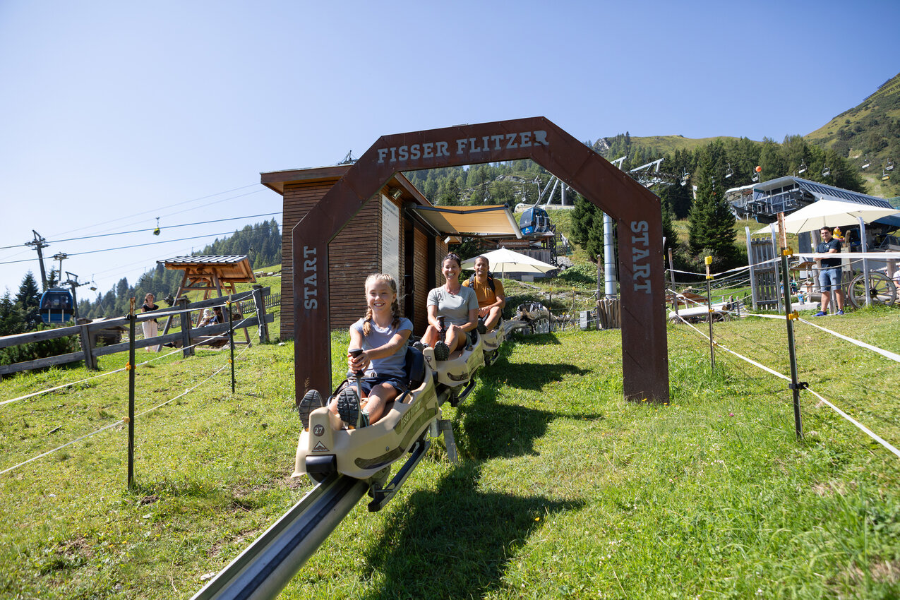 Auf dem Bauch liegend 47 Meter über dem Boden schweben und mit Karacho durch die Luft sausen: der Fisser Flieger bietet genau das! Wie Superman oder Wonder Woman schweben alle schwindelfreien Besucher mit 80 Kilometern pro Stunde am Riesendrachen durch die Fisser Bergwelt. Glückliches Kinderlachen und tränende Augen inklusive. Und jene, die auf eine etwas andere Art zurück ins Tal gelangen wollen, sollten in den Fisser Flitzer einsteigen. Auf zweieinhalb Kilometern durch Höhlen, Tunnel oder durch ein Piratenschiff geht’s zur Talstation in Fiss.