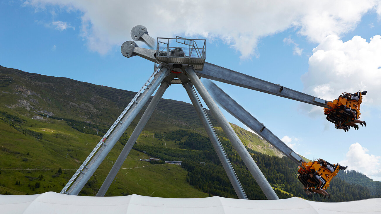 Isch des bärig! Auf 1.812 Metern Seehöhe gibt’s Nervenkitzel pur! Ob Skyswing, Fisser Flitzer oder Fisser Flieger, der Puls kommt sicher nicht zur Ruhe! Im Skyswing wird zu acht Platz genommen. Es sind nur wenige Minuten, in denen Fliehkraft und Gravitation abwechselnd auf einen wirken, dennoch sind es Momente, die süchtig machen – und das im positiven Sinn!