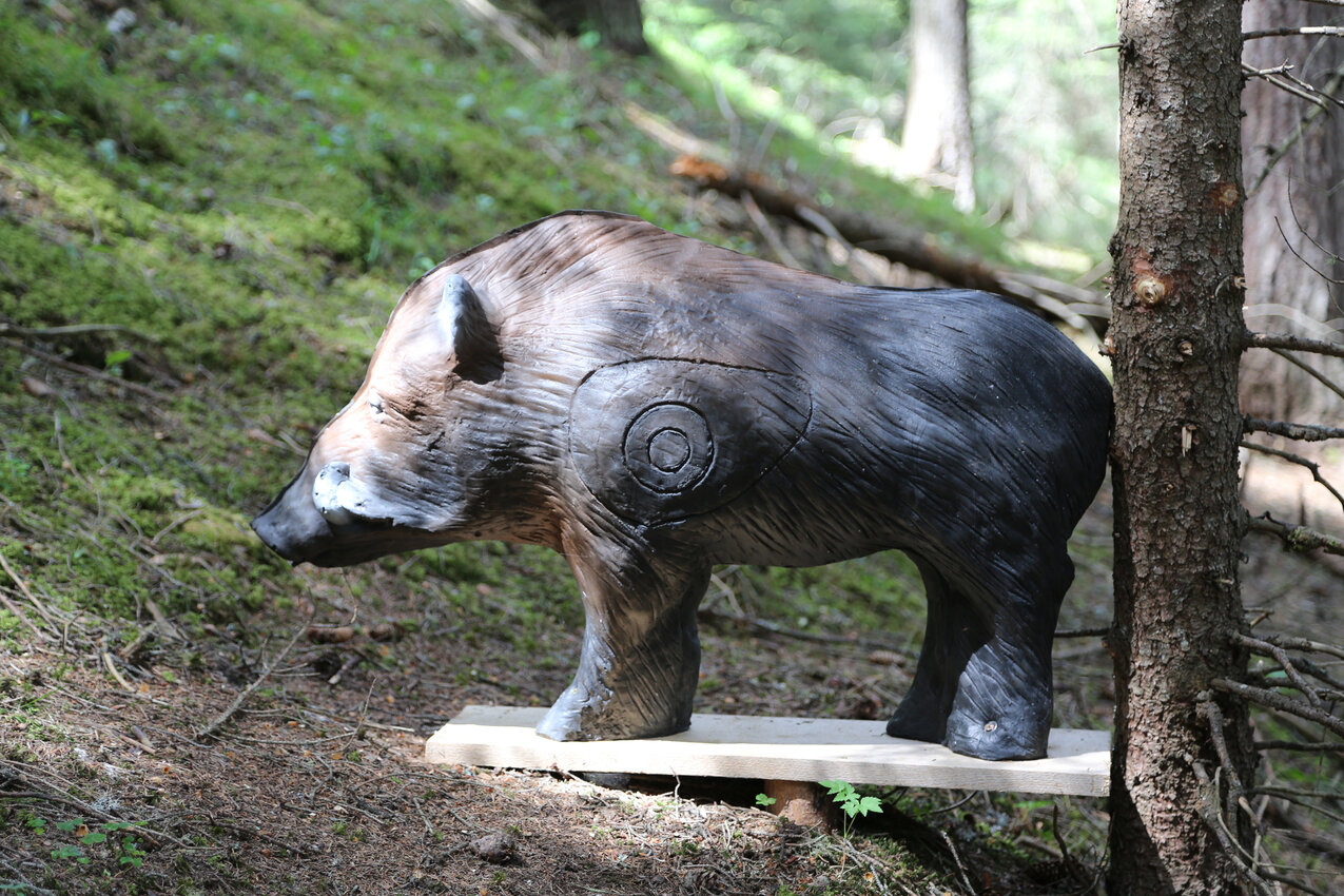 Der 3D Bogenparcours erstreckt sich mit 14 Zielen entlang eines markierten Rundparcours mit einer teilweisen Steigung durch lichten Wald. (Einbahn)