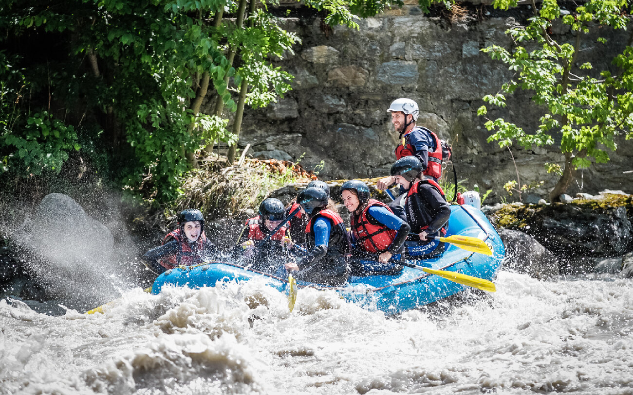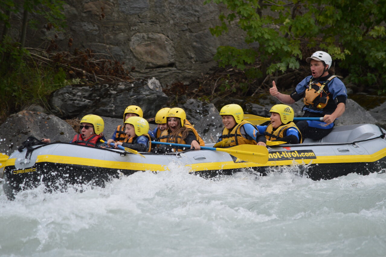 Ein Outdoor-Erlebnis, das ausschließlich freudig strahlende Gesichter mit sich bringt: Rafting in den Bergen Tirols! Ausgerüstet mit Paddel, Neoprenanzug, Rettungsweste und einem Helm, geht’s auf eine Rafting-Tour durch glasklare Flüsse. Immer mit dabei: jede Menge Nervenkitzel und Spaß!
