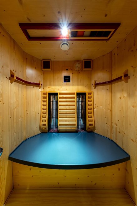 Einen Wellnessbereich mit Sauna, Dampfbad, Infrarotkabine, Ruheraum mit Physiotherm Wärmeliegen.... (im Winter inklusive, im Sommer zubuchbar)