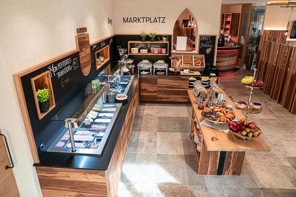 In unserem Burgmarktbereich bieten wir Ihnen täglich ein großzügiges Frühstücksbuffet.