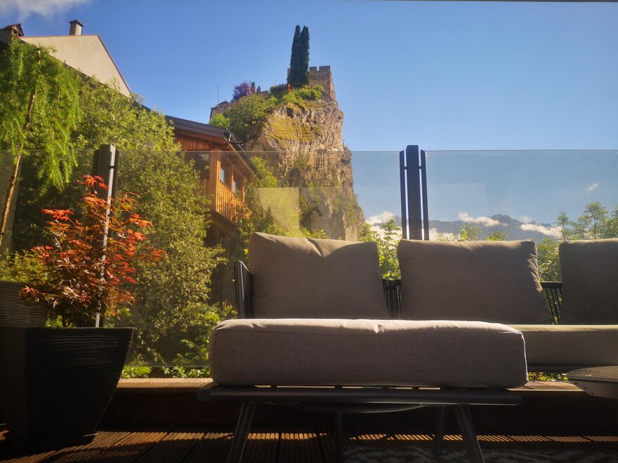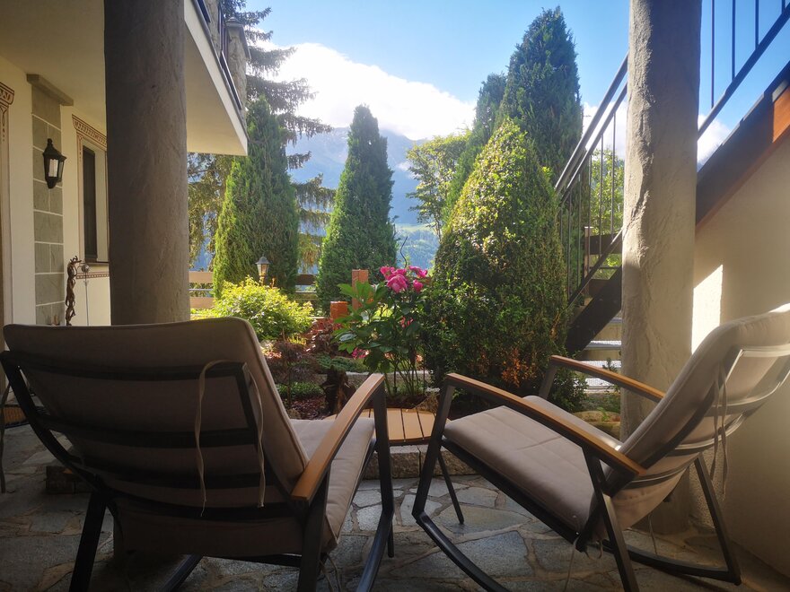 Unser Haus liegt sonnig und ruhig gelegen mit herrlichem Panoramablick und doch in einer zentralen Lage (Nähe Kirche, Supermarkt) ca. 10min zu Fuß zur Seilbahn. Wir verfügen über eine große Südterrasse mit Gartenmöbel und Liegestühlen . Hauseigene Parkplätze vorhanden!