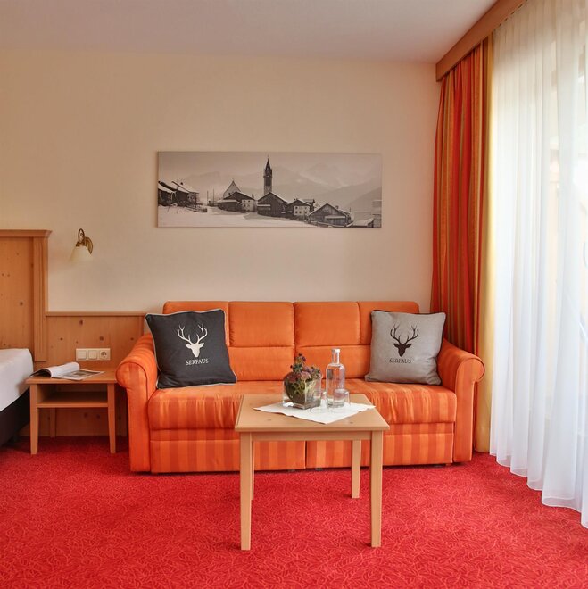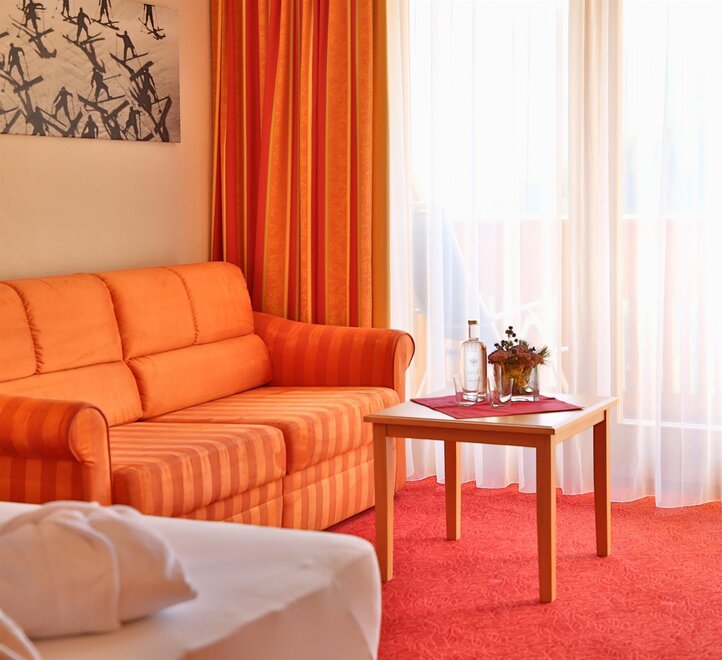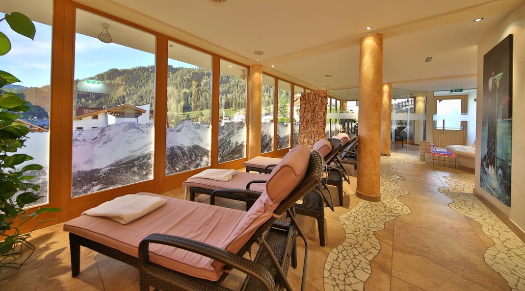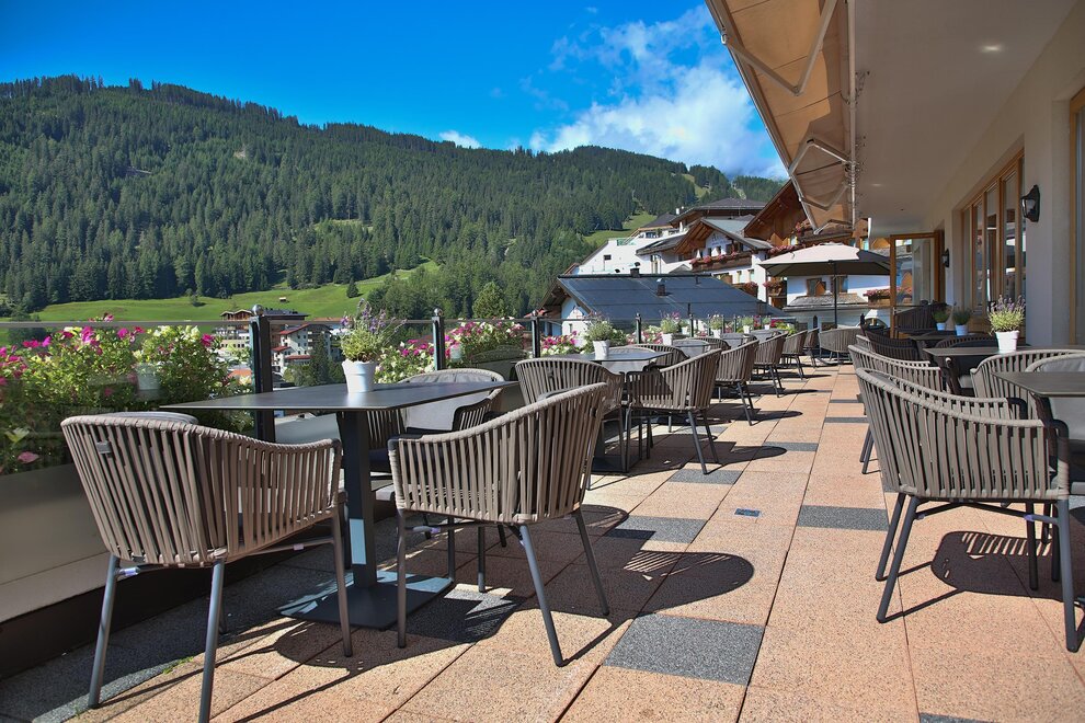 Die einzigartige Lage und der Panoramablick sind unbeschreiblich. Im Winter können Sie mit den Skiern/Snowboard direkt zum Hotel fahren. Im Sommer kommen Sie vom Berg unmittelbar zum Hotel. In nur wenigen Gehminuten gelangen Sie zur Talstation der Seilbahnen und ins Dorfzentrum. Unser Haus befindet sich in ruhige Lage, es gibt genügend Parkplätze . Inklusive Leistungen: täglich reichhaltiges Frühstücksbuffet ,7 Tage pro Woche von 13.00 bis 17.00 Uhr Jause und Kuchen vom Buffet , 6 Tage pro Woche (außer Mittwoch) von 18.00 bis 20.00 Uhr Abendessen (Buffet). Jeden Mittwoch kleine Bistro Speisekarte von 18.00-20.00 Uhr . Wir stellen Skipässe und Super-Sommer-Card aus.