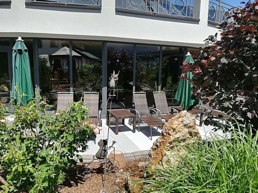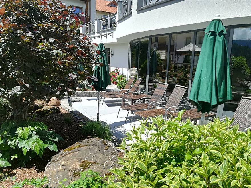 Familiär geführtes Hotel Garni in sonniger, zentraler und trotzdem ruhiger Lage mit TIEFGARAGE (inkl. Ladestation für e-Autos gegen Gebühr) und WELLNESSBEREICH MIT HALLENBAD, Sauna, Dampfbad, Ruheraum mit Wasserbetten. Im Sommer - schön