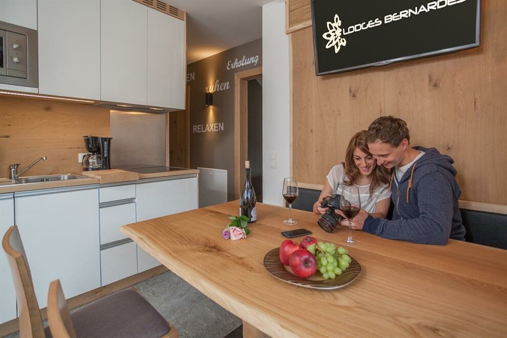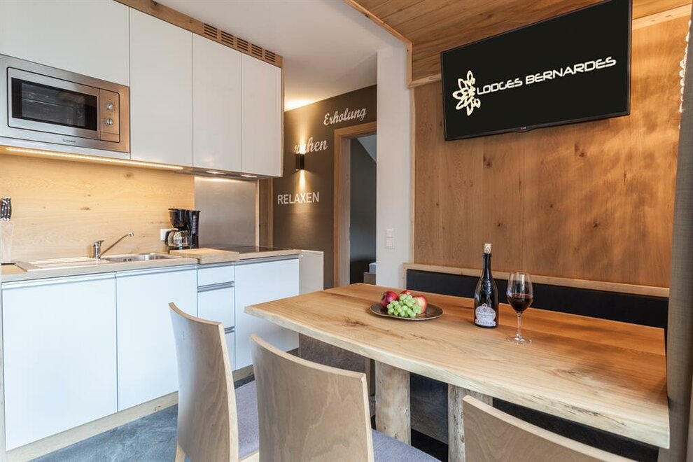 Unser NEUES Aparthaus liegt zentral ca. 4 Gehminuten von der Seilbahn entfernt. Abfahrt bis zum Haus möglich. Unsere LUXUS-Appartements (teils Zirbenholz) modernst eingerichtet(zwei getrennte Schlafzimmer), gemütliches Wohnzimmer, Sofa, Kabel -TV, zwei getrennte Duschen u.WC's, Internetzugang, Telefon, Wohnküche mit E-Herd,Mikrowelle,Geschirrspüler und Balkon. Wir bieten Brötchen,und BIO-Produkte! Der Besuch in der Sauna vom HAUS BERNARDES ist gegen einer Tagesgebühr buchbar. Die Endreinigung wird separat verrechnet.