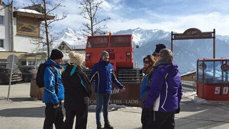 Ob in Serfaus an der Mittelstation der Komperdellbahn oder in Fiss an der Hauptkassa – der Treffpunkt ist jeden Donnerstag um 13.00 Uhr, ab dem 11.12.2025 bis zum 09.04.2026.