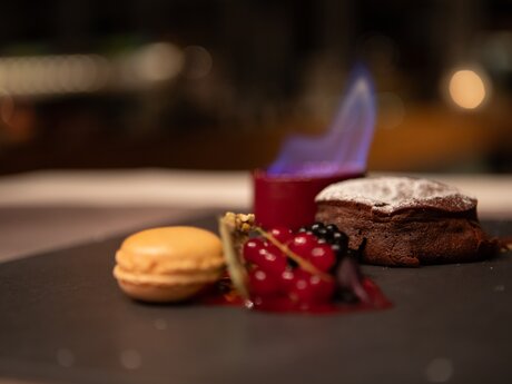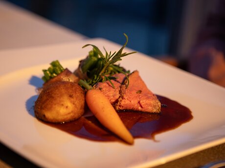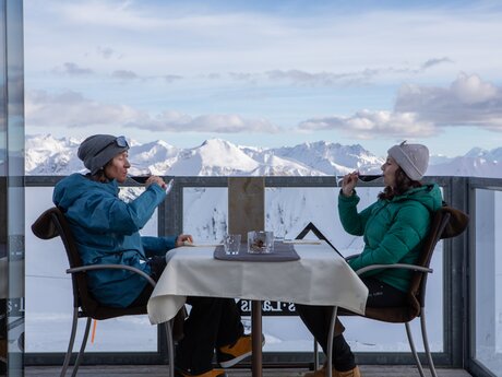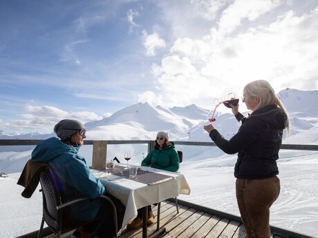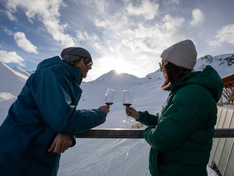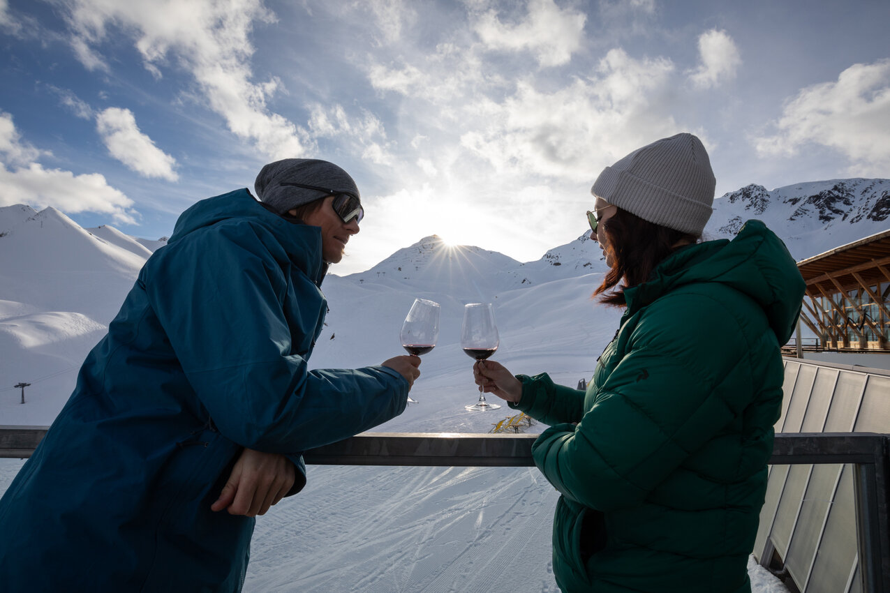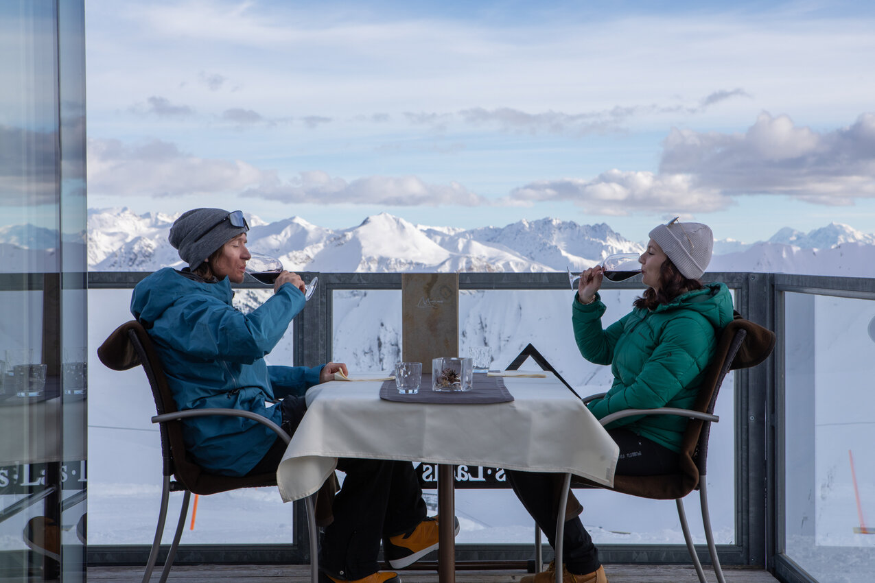 Zum krönenden Abschluss eines traumhaften Skitages wartet ein romantisches Abendessen über den Wolken. Im Restaurant Monte Mare auf 2.430 Metern Höhe dürfen Sie nicht nur das atemberaubende Schauspiel der untergehenden Sonne bestaunen. Das rundum verglaste Restaurant in Serfaus-Fiss-Ladis bietet auch kulinarisch herrliche Höhepunkte. Das liebevoll zubereitete Mehrgang-Menü, begleitet von edlen Weinen (nicht im Preis inkludiert), ist ein genussvolles Erlebnis.
