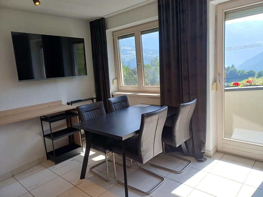 The new apartment "Morgensonne" is situated on a dreamlike place on the sunny plateau (Ladis), on 1,200 meters, directly above the ski lifts (95m) of the "Serfaus-Fiss-Ladis". Our guests and we (the Kathrein family) enjoy the fascinating view of the mountains of the Tyrolean Oberland. The adjacent forest offers numerous hiking and mountain biking trails directly from the house. Restaurants, tennis, natural bathing lake and a grocery store are nearby.