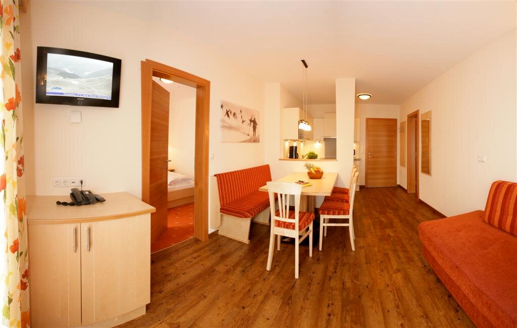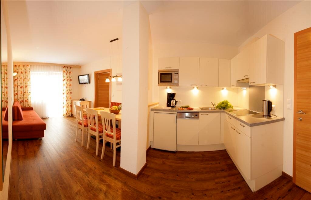 Near metro station, just 2 minutes to the children's ski area. Adventure playground next to the house. Appartements for 2-8 persons (partially with infrared sauna directly into the apartment) all appartements with cable -TV in all rooms, telephone, microwave, dishwasher, refrigerator, bed linen, towels and tea towels. . !! Incl. Wellness oasis in winter !! Zirbenstube with flat screen TV, children's playroom. Internet FREE. All appartements with a balcony or terrace. Breakfast or service. New : Attic-Appartement with own sauna!