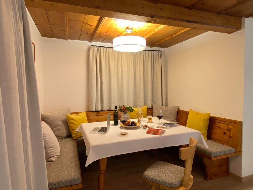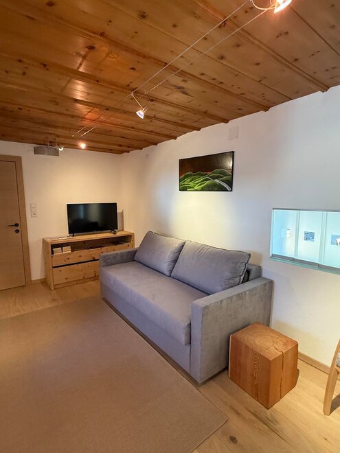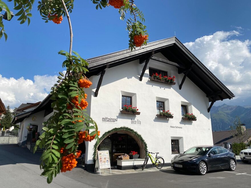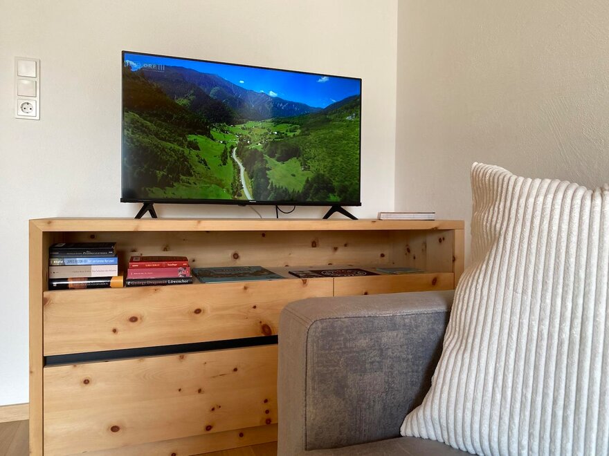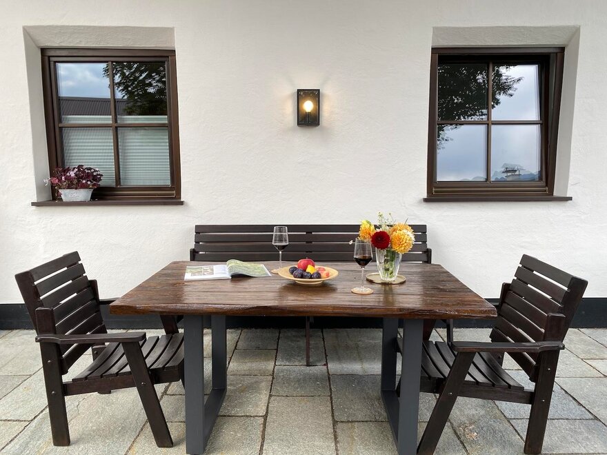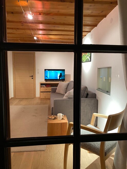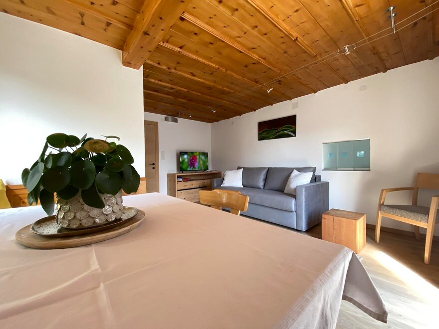The apartment in the Schranz house is 60m2 in size. Separate dining kitchen, 1 bedroom, a pine room (also used as a living/sleeping room), and a small bathroom - all separate rooms. This creates a relaxing atmosphere. Oh yes, and a 30m2 private terrace with deck chairs, a garden bench with a large outdoor table... Fresh chives from Stefan, Walli, and Elisa's raised bed - that works too, if you’re missing that green flavor note while cooking. "All fees included"